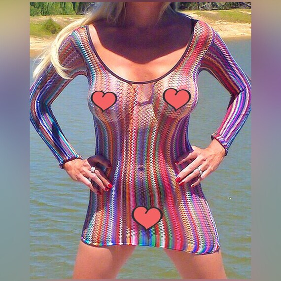 rainbow mesh mini dress