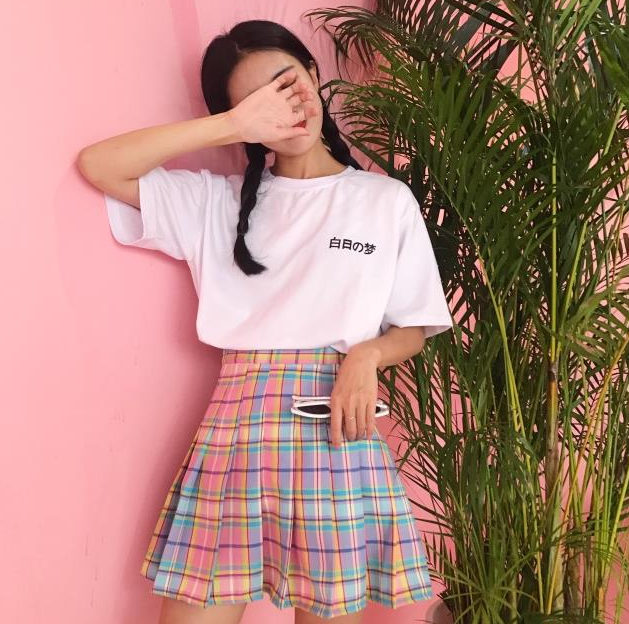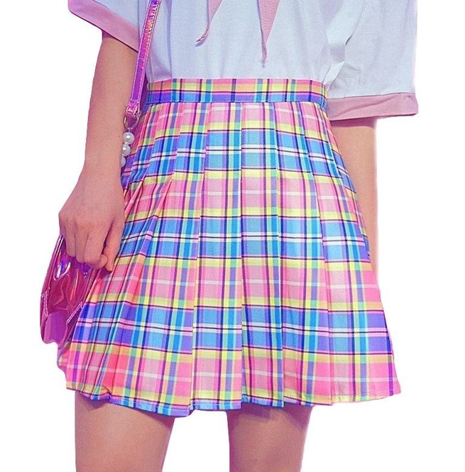 rainbow plaid skirt