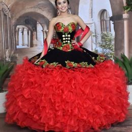 red and black quinceanera dress