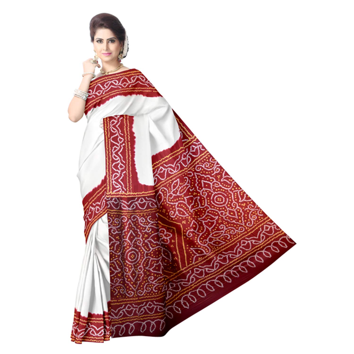 red bandhani silk saree