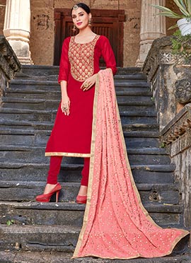 red churidar suit