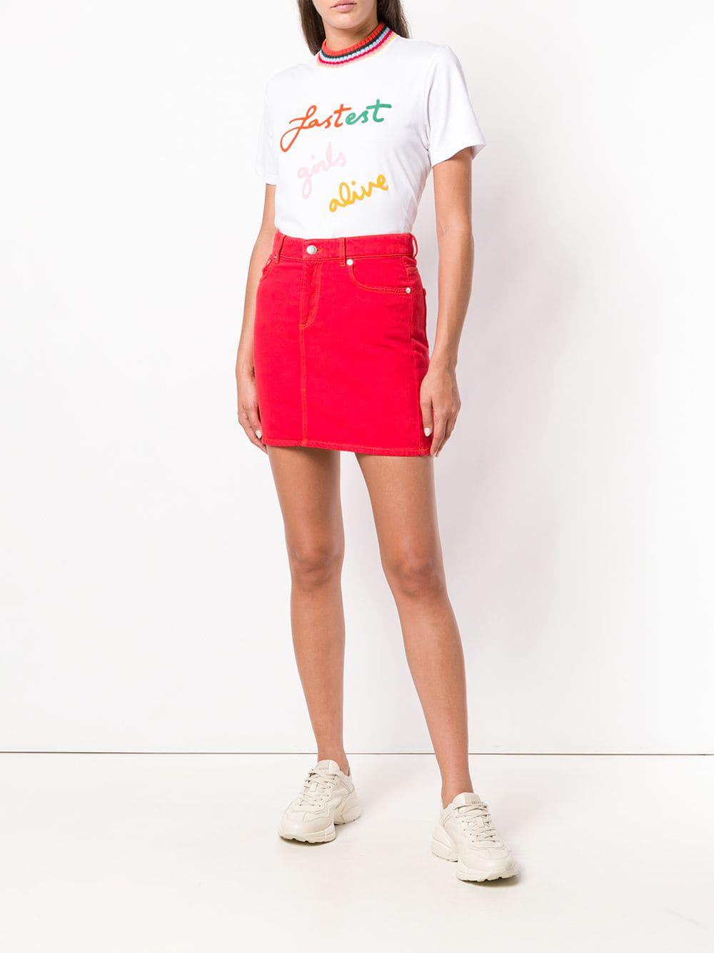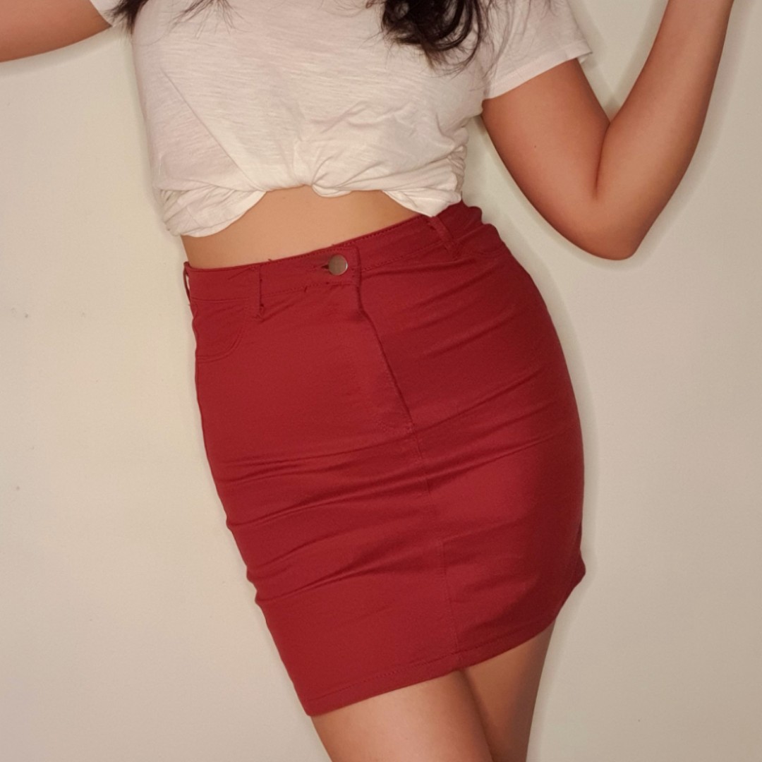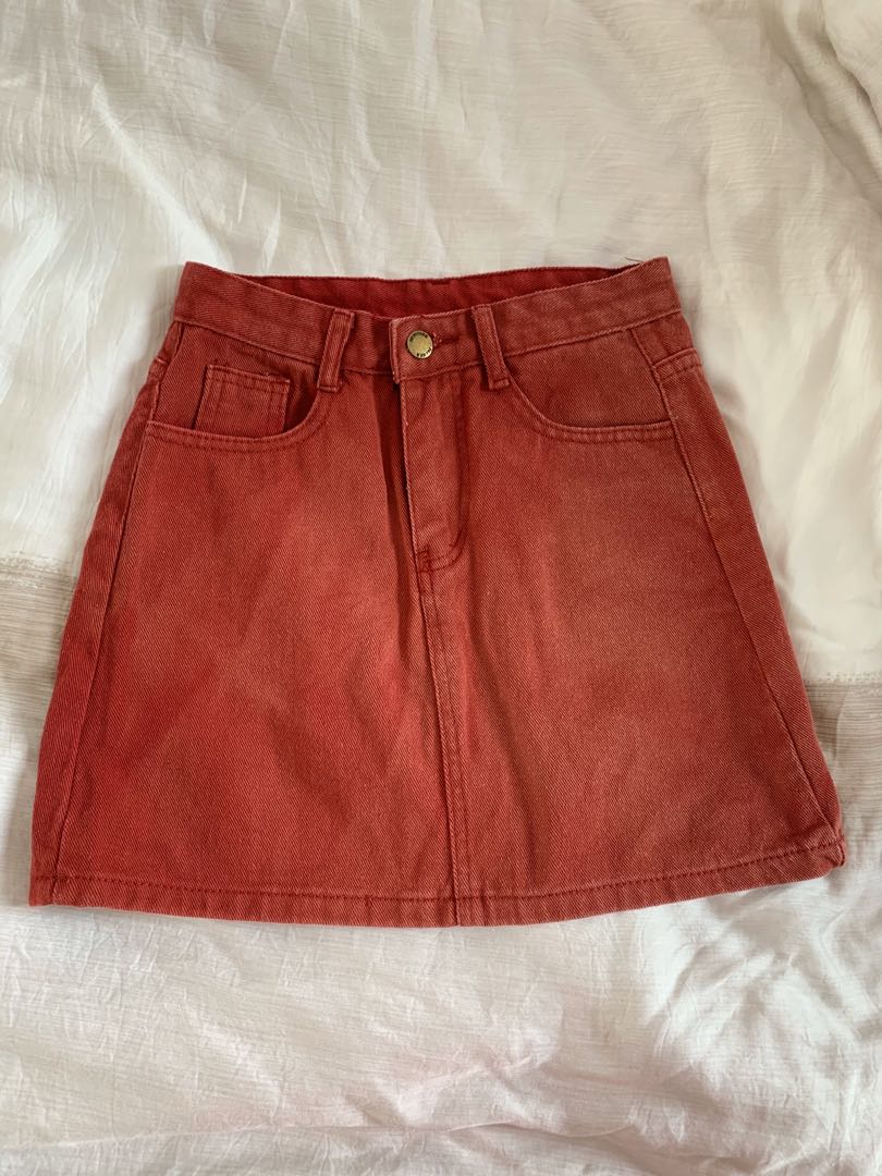 red denim skirt