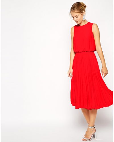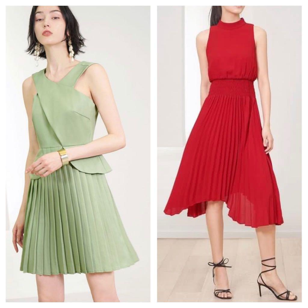 red dress pleated skirt