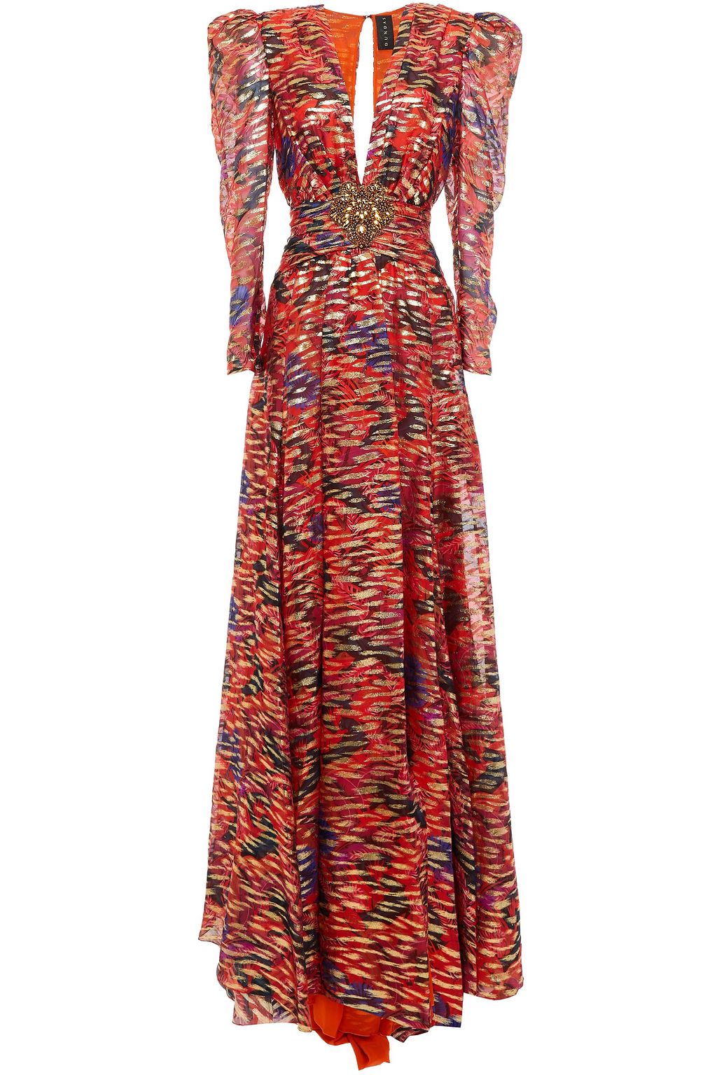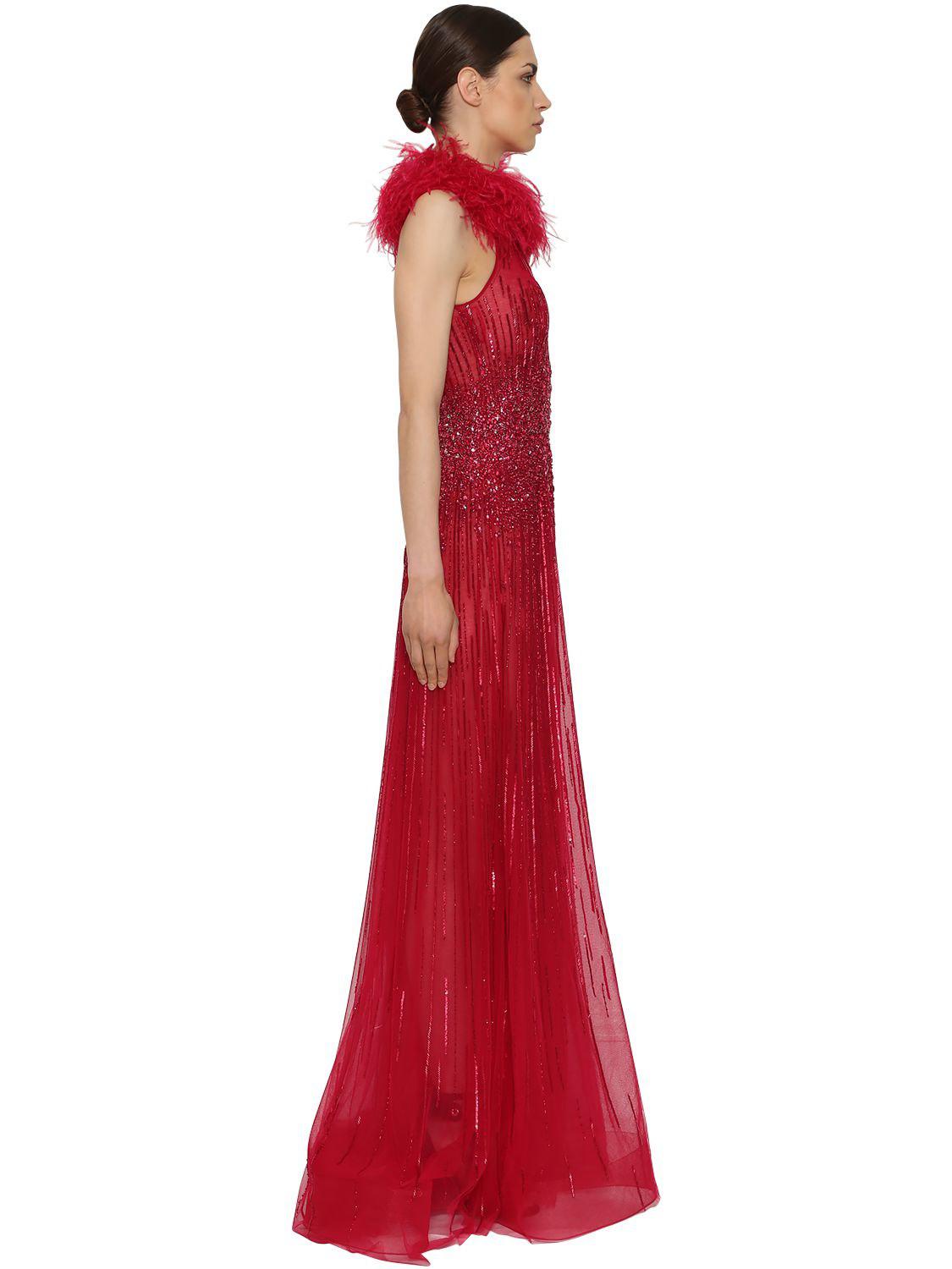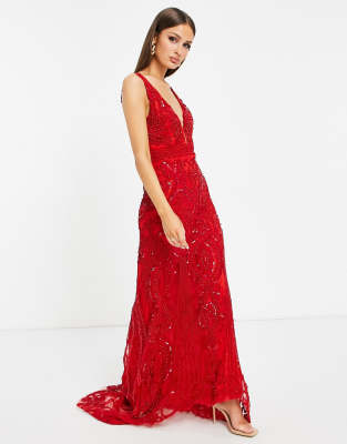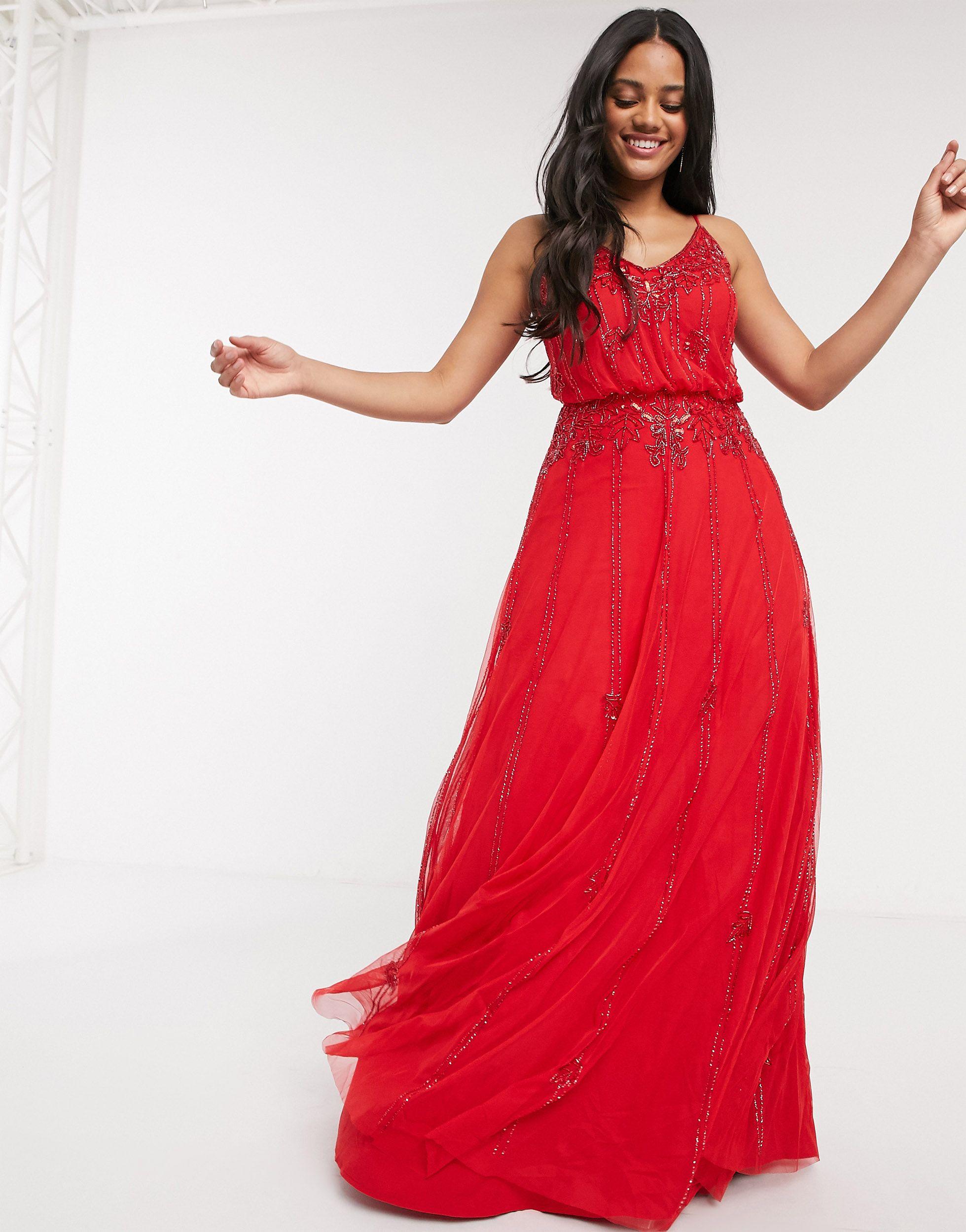 red embellished gown