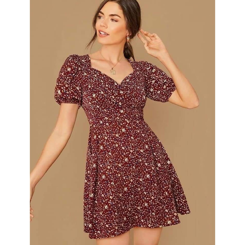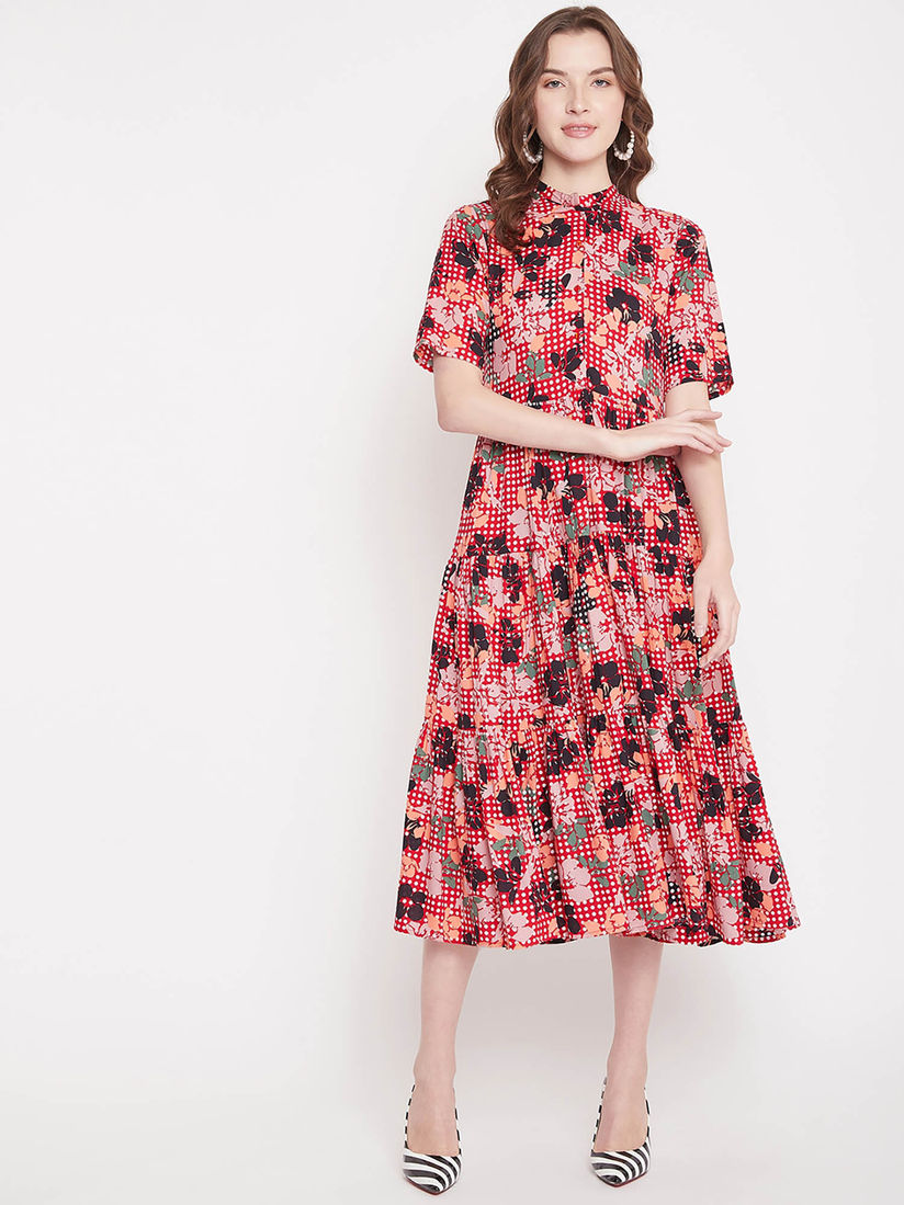 red floral casual dress