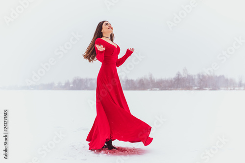 red flowing gown