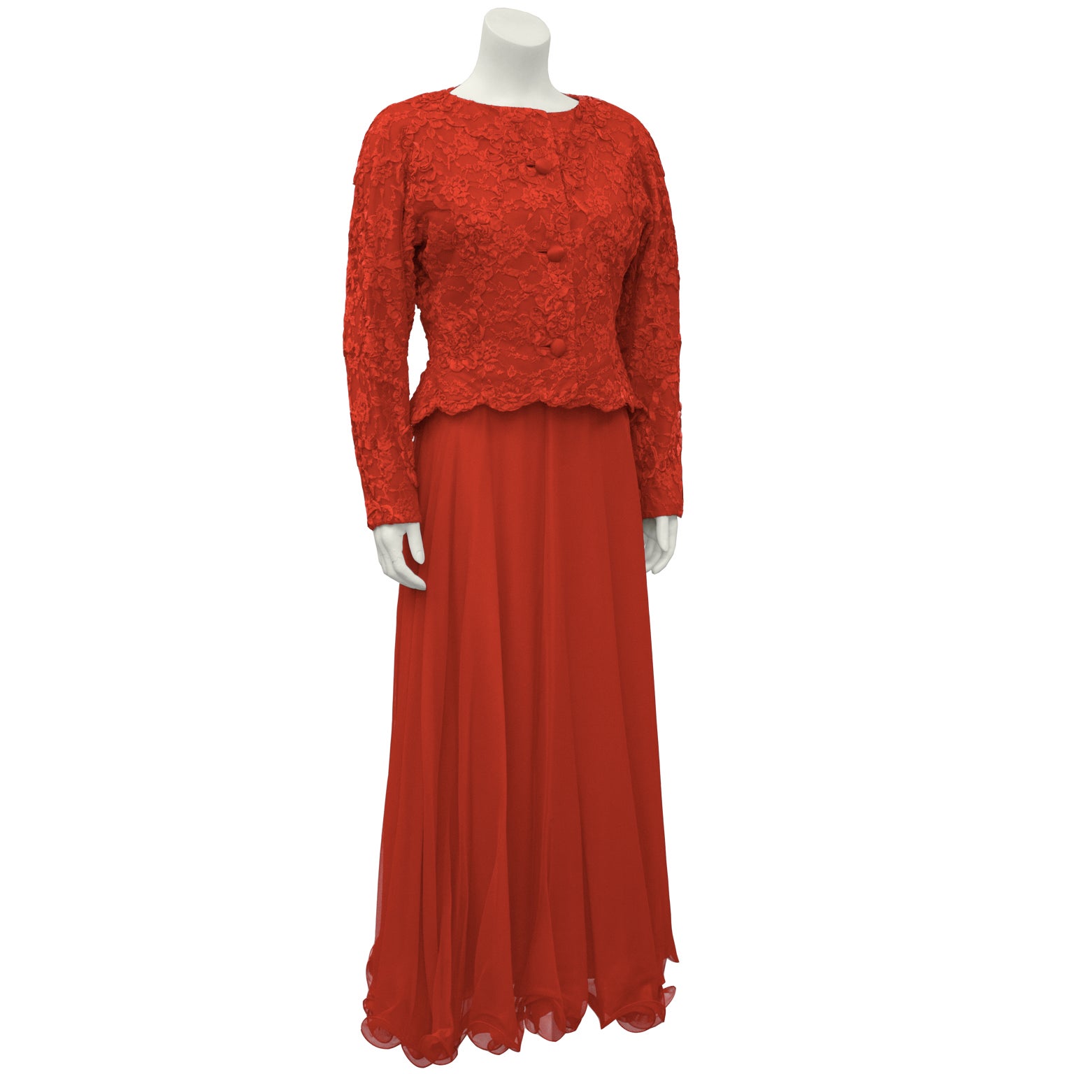red gown with jacket
