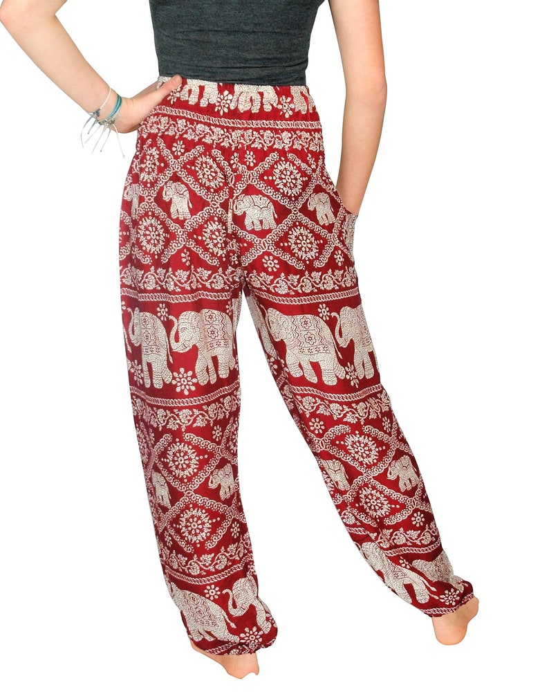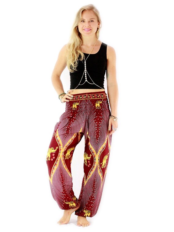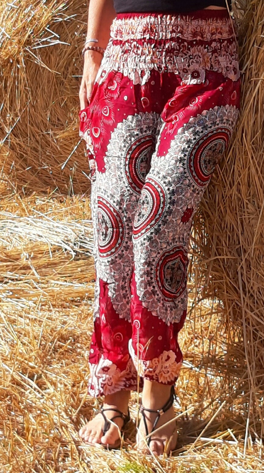 red hippie pants