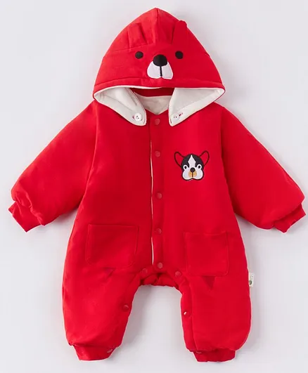 red hooded romper