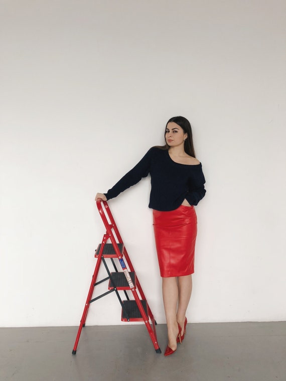 red leather skirt