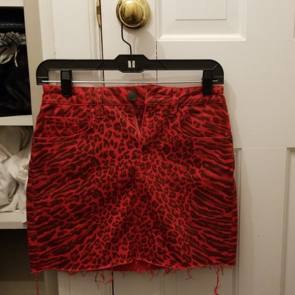 red leopard denim skirt