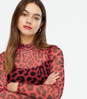 red leopard print mesh top