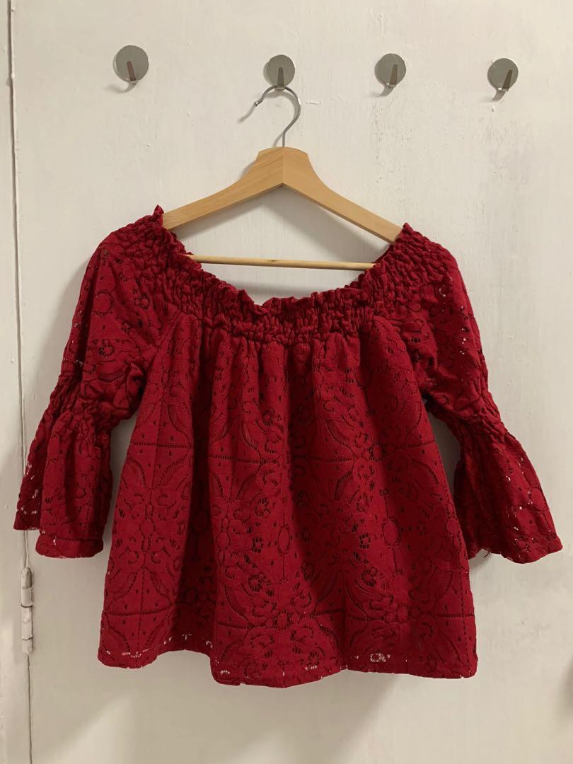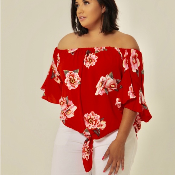 red off shoulder top plus size