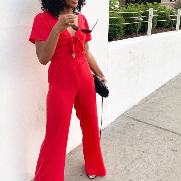 red romper pants