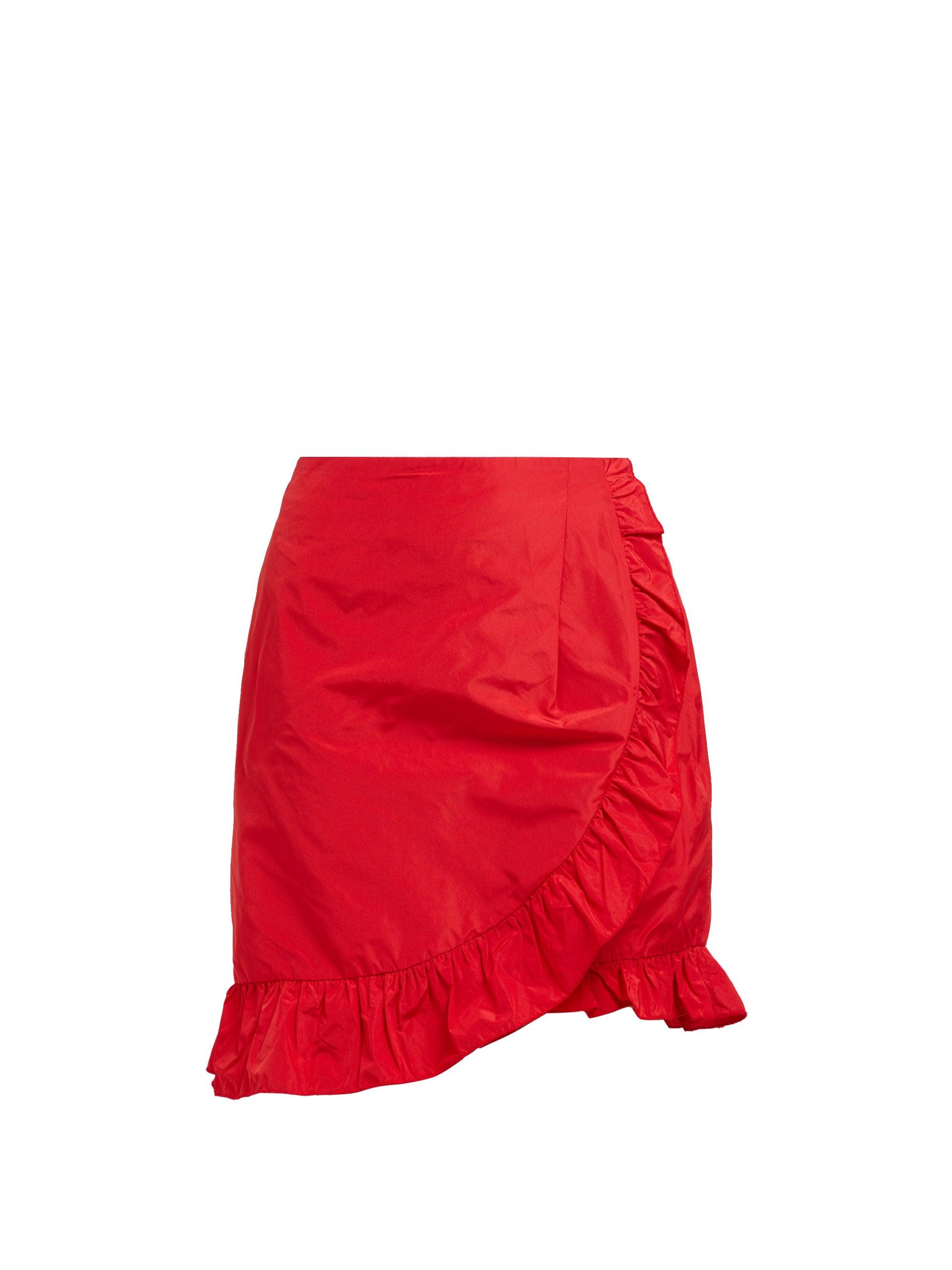 red ruffle mini skirt