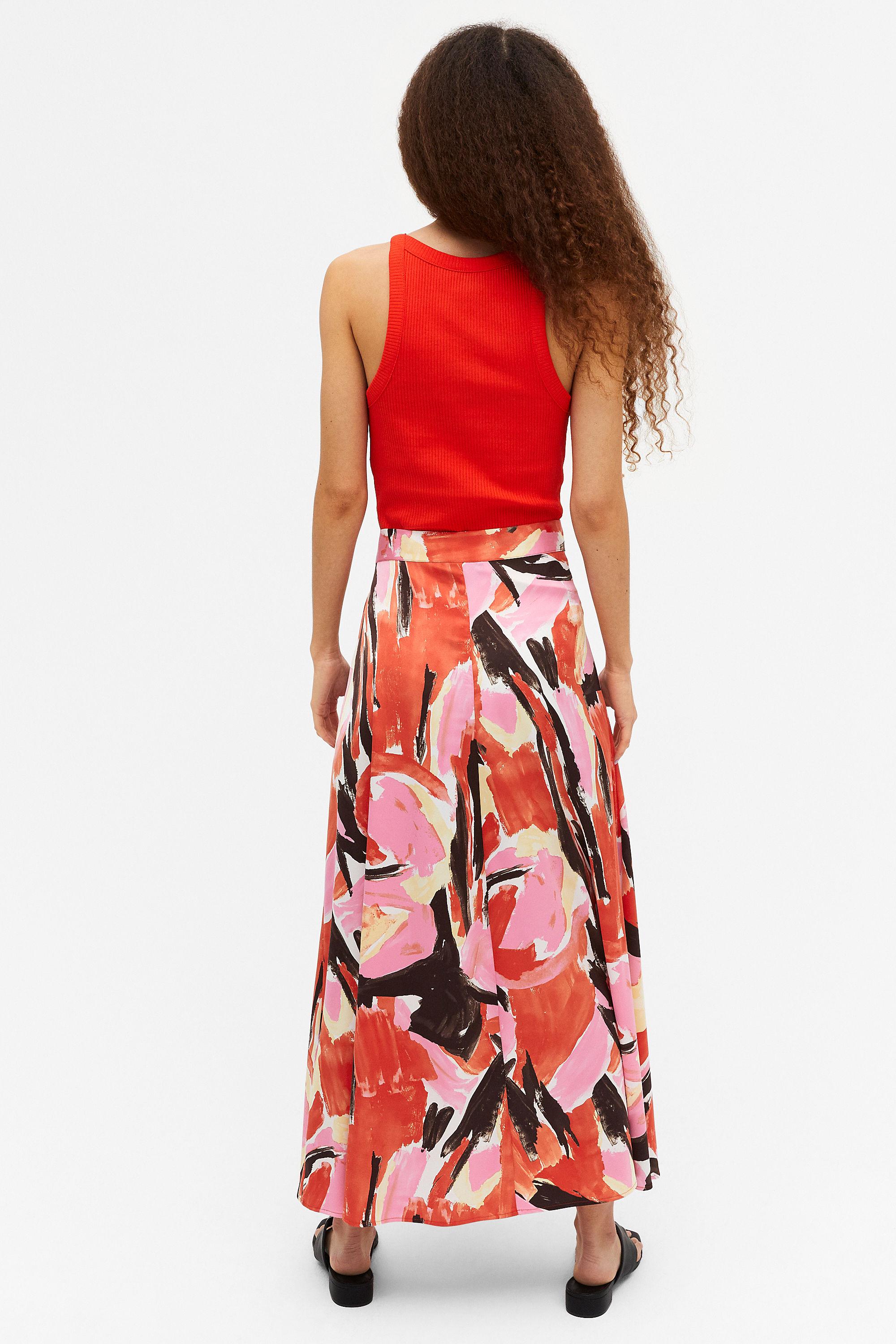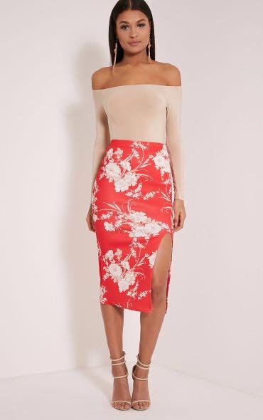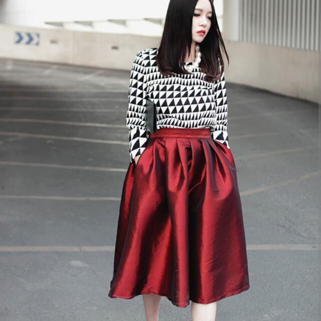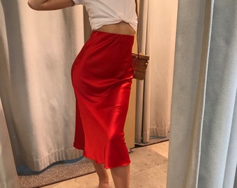 red silky skirt