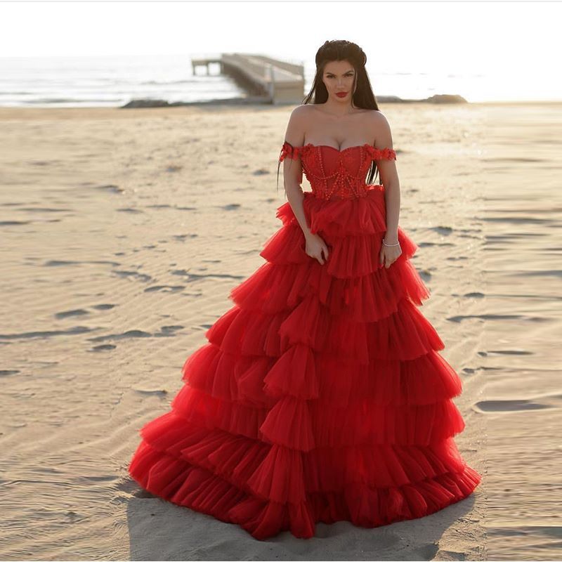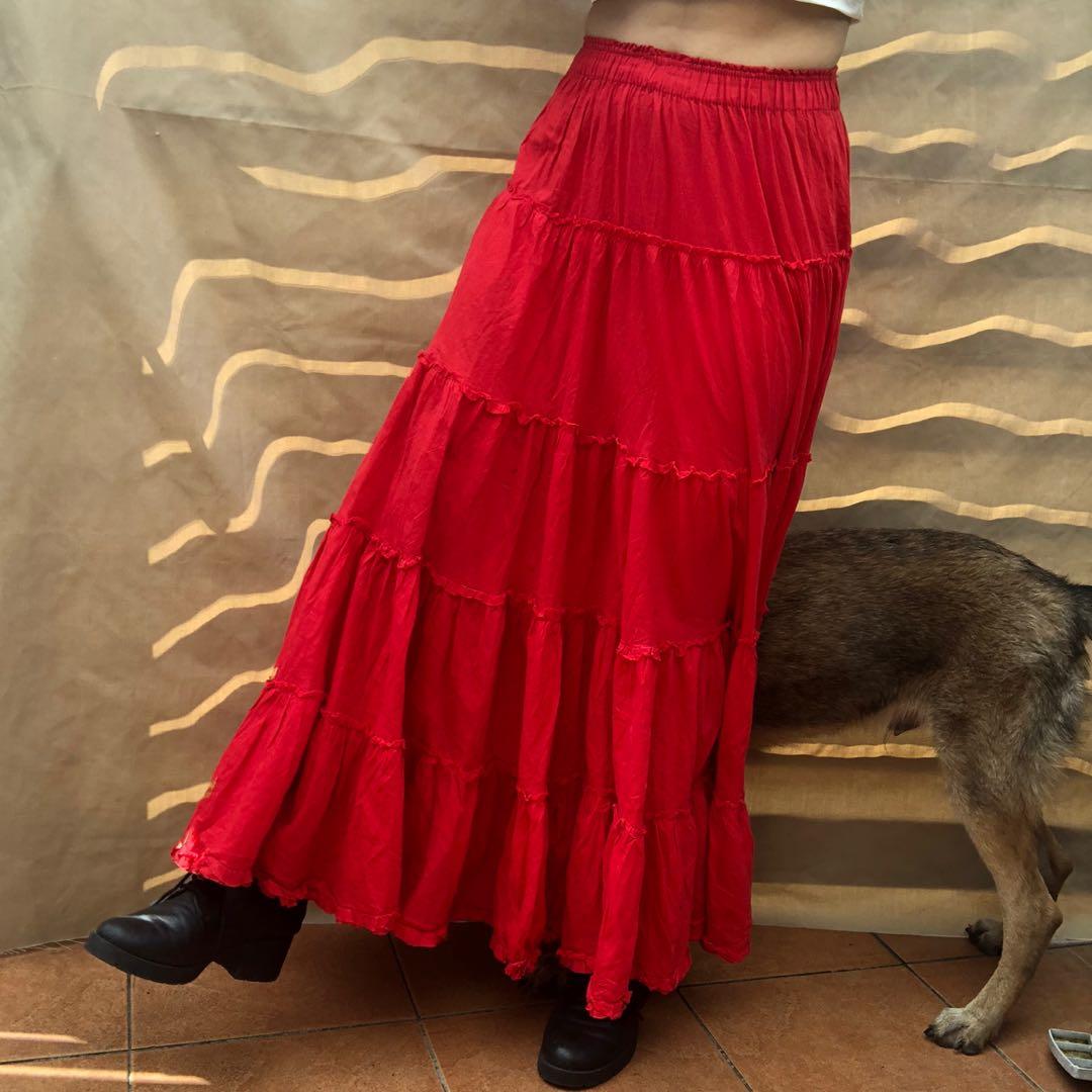 red tiered skirt