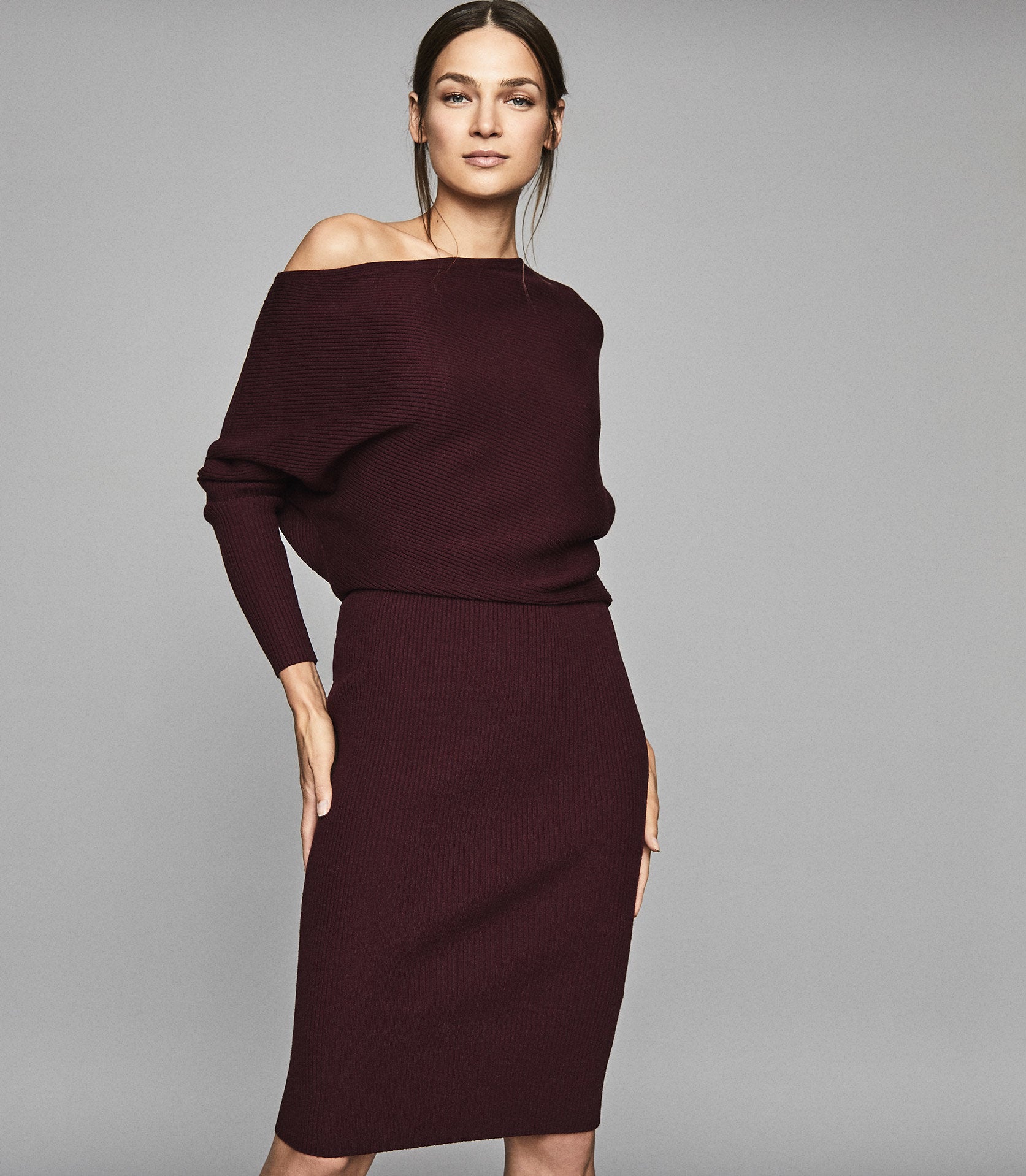 reiss lara off the shoulder dress