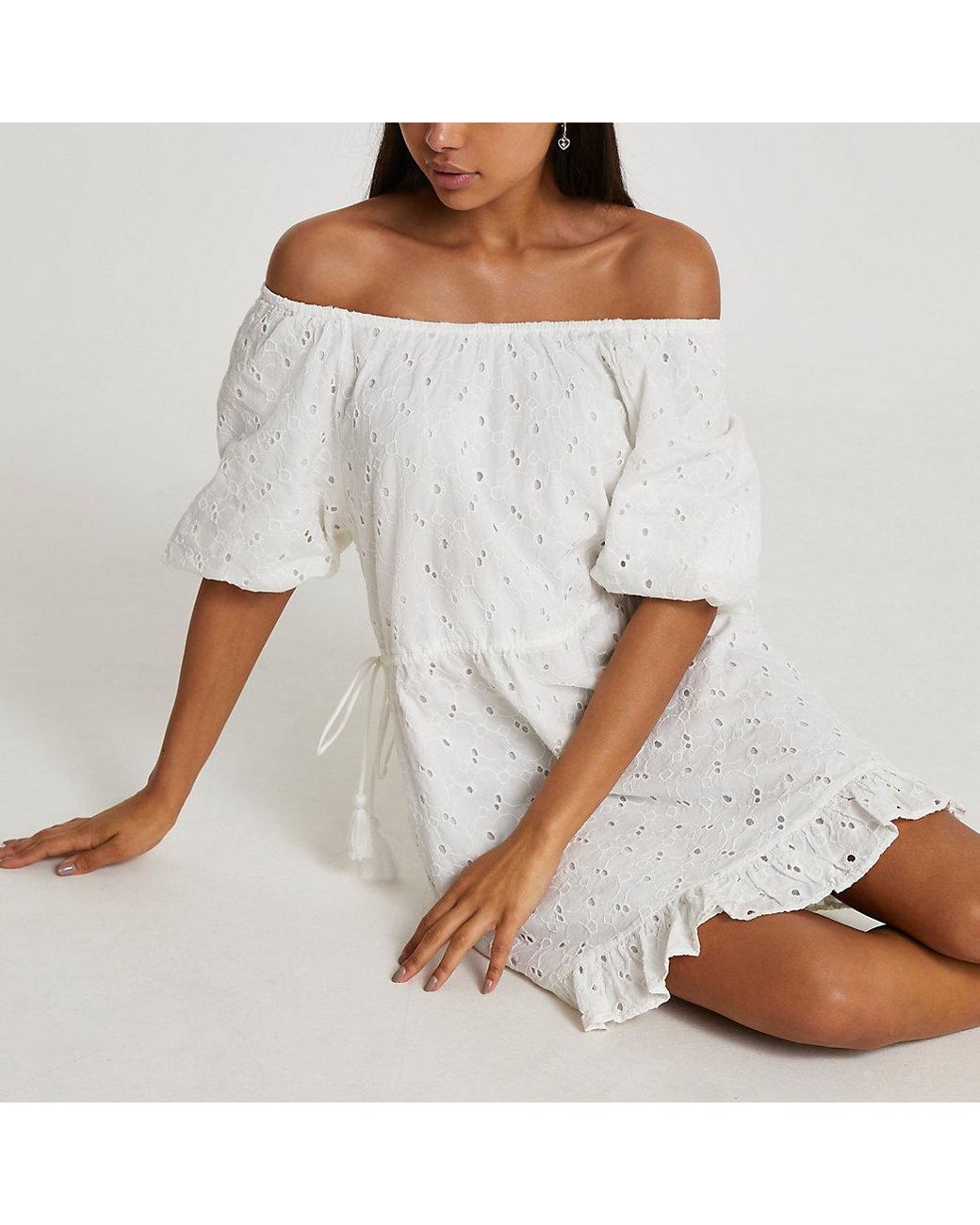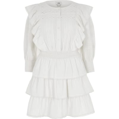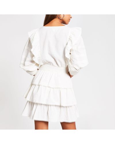 river island white tiered frill waisted mini dress