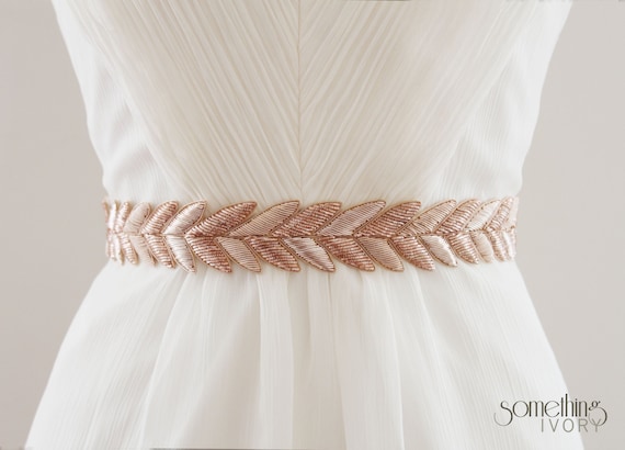 rose gold belt wedding dress