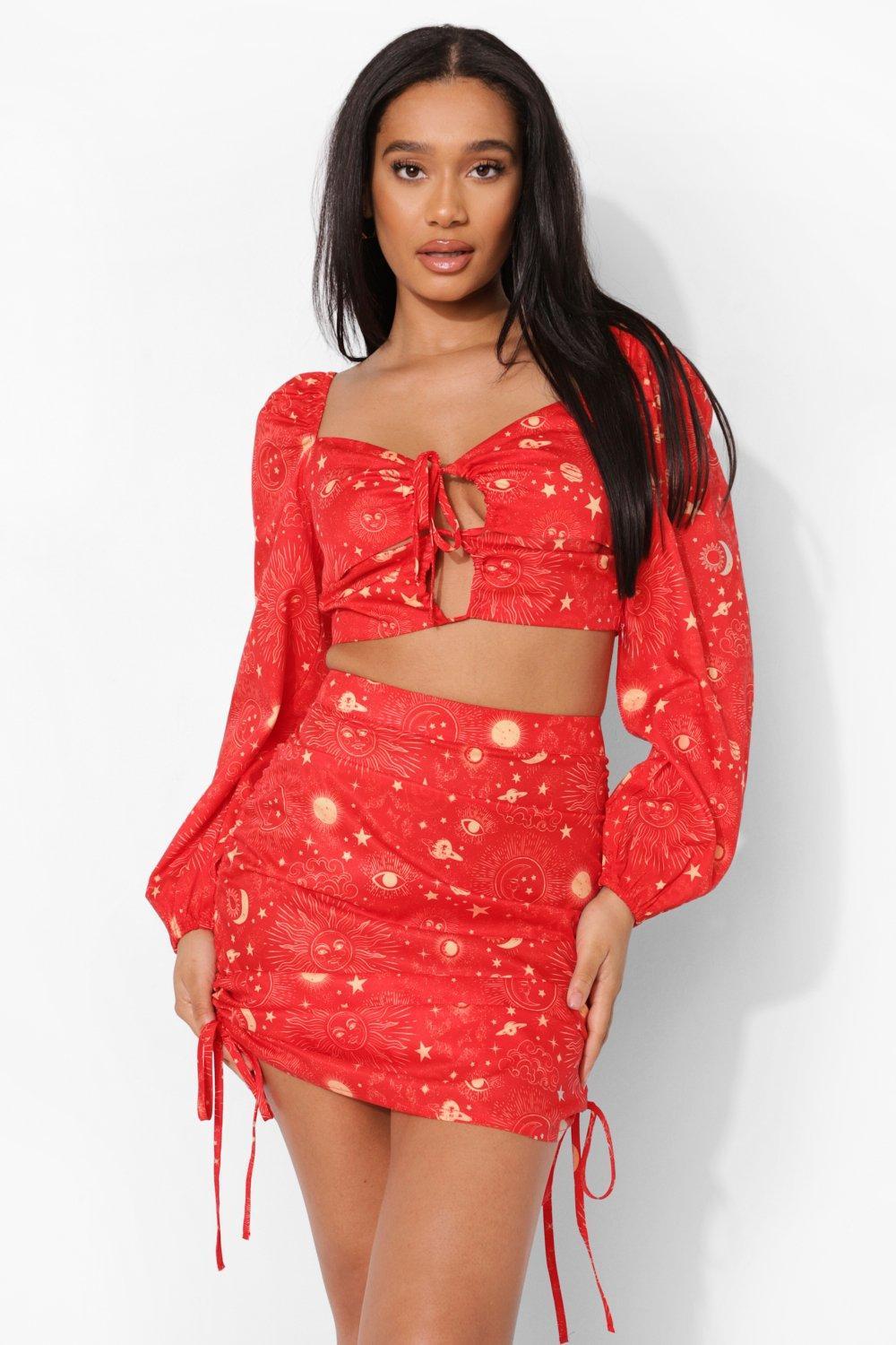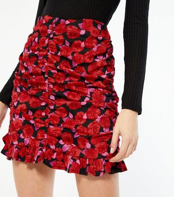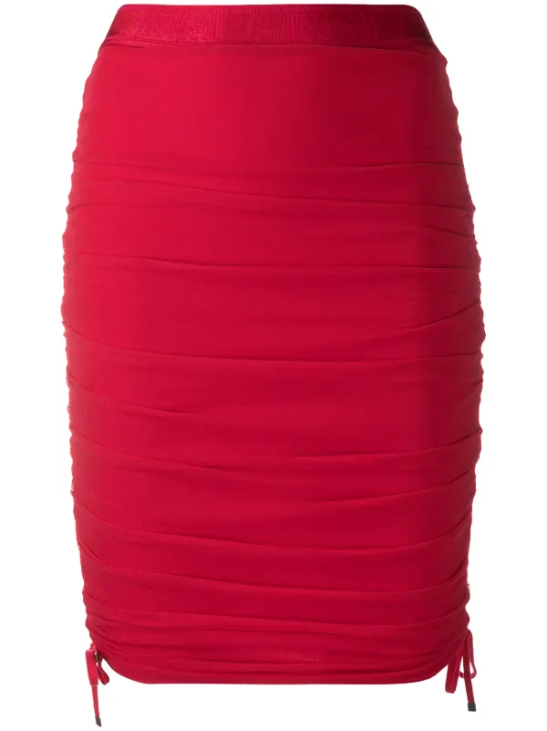 ruched red skirt