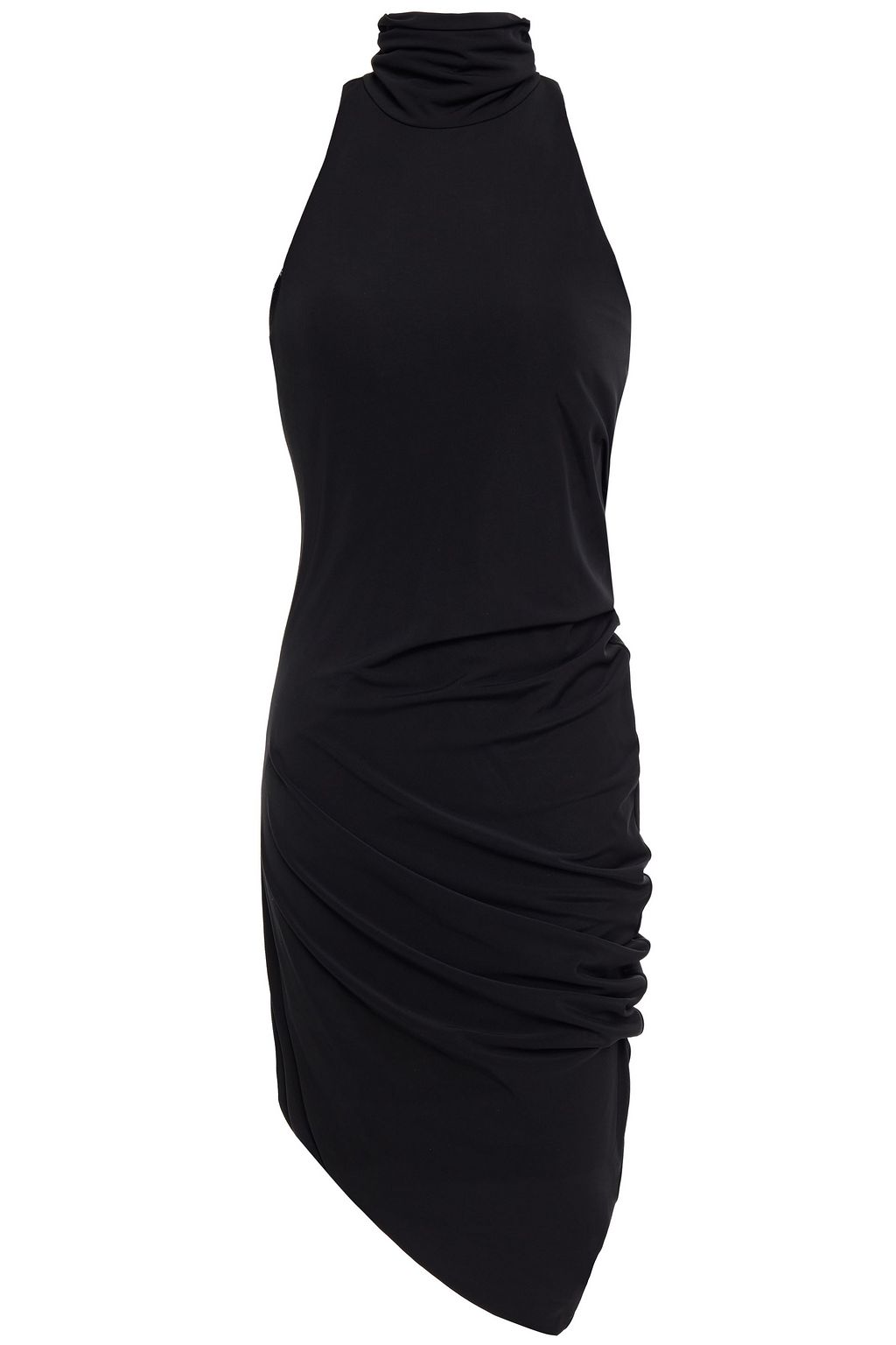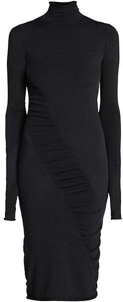 ruched turtleneck dress