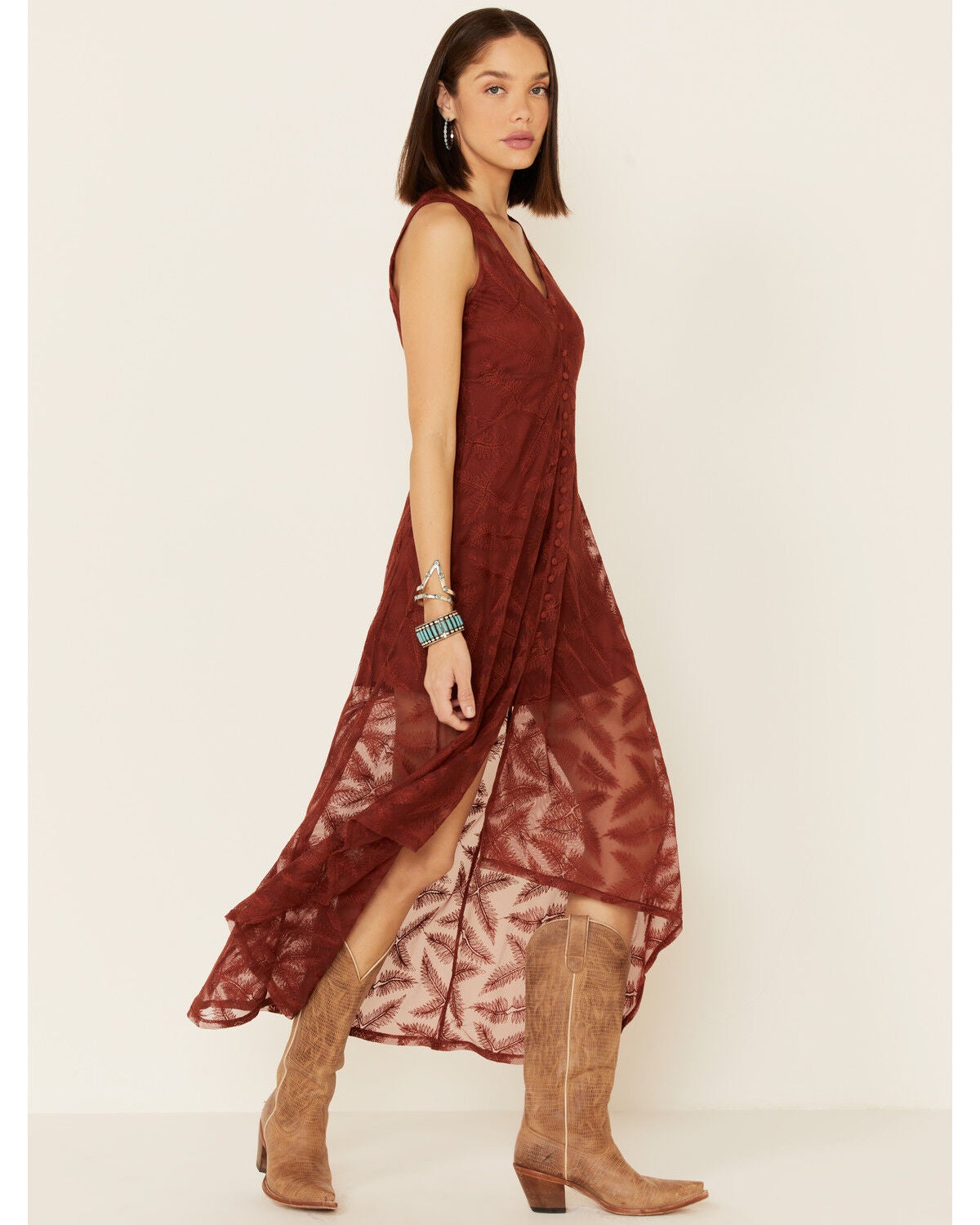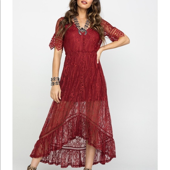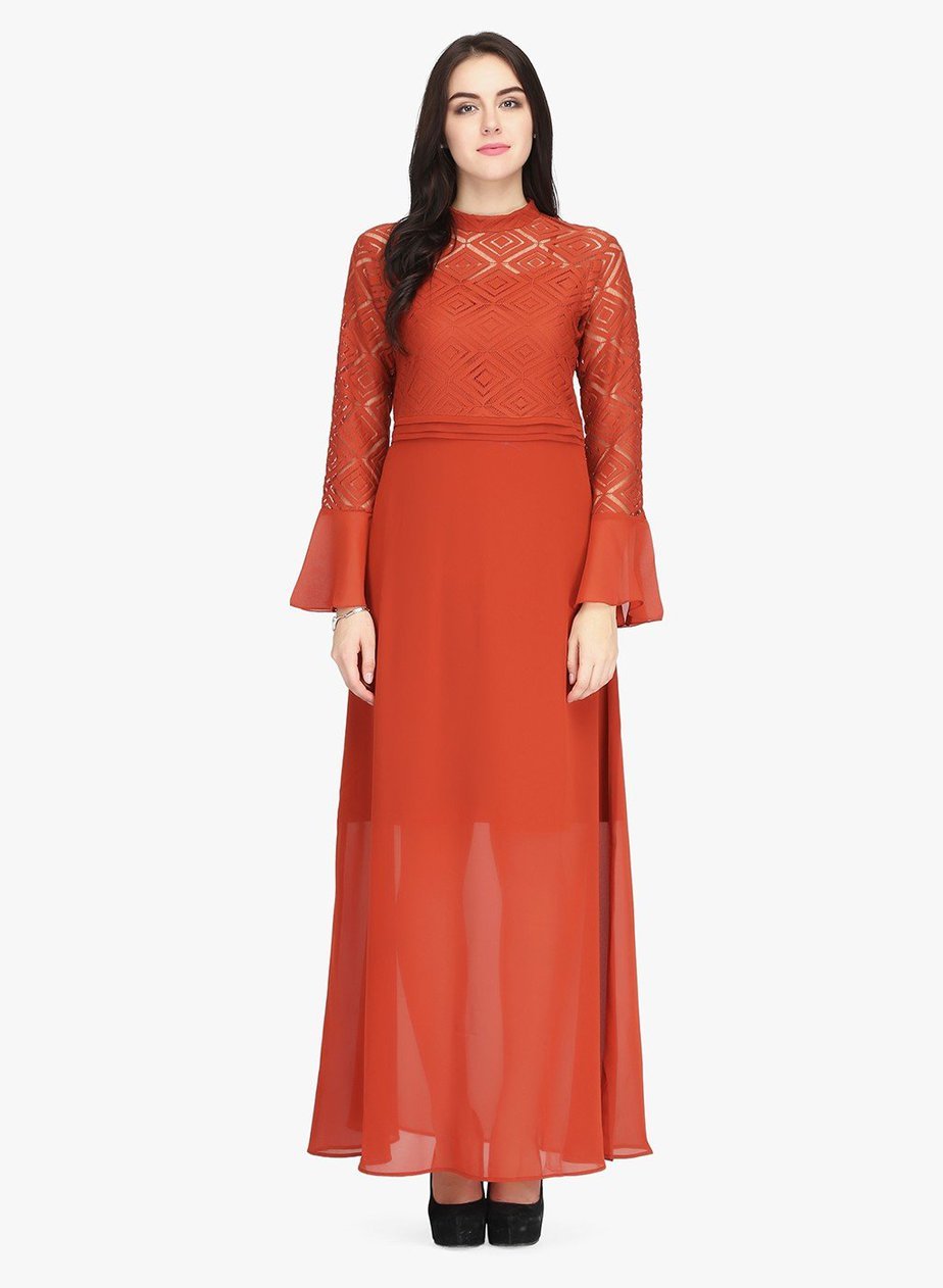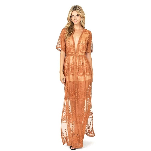 rust lace maxi dress