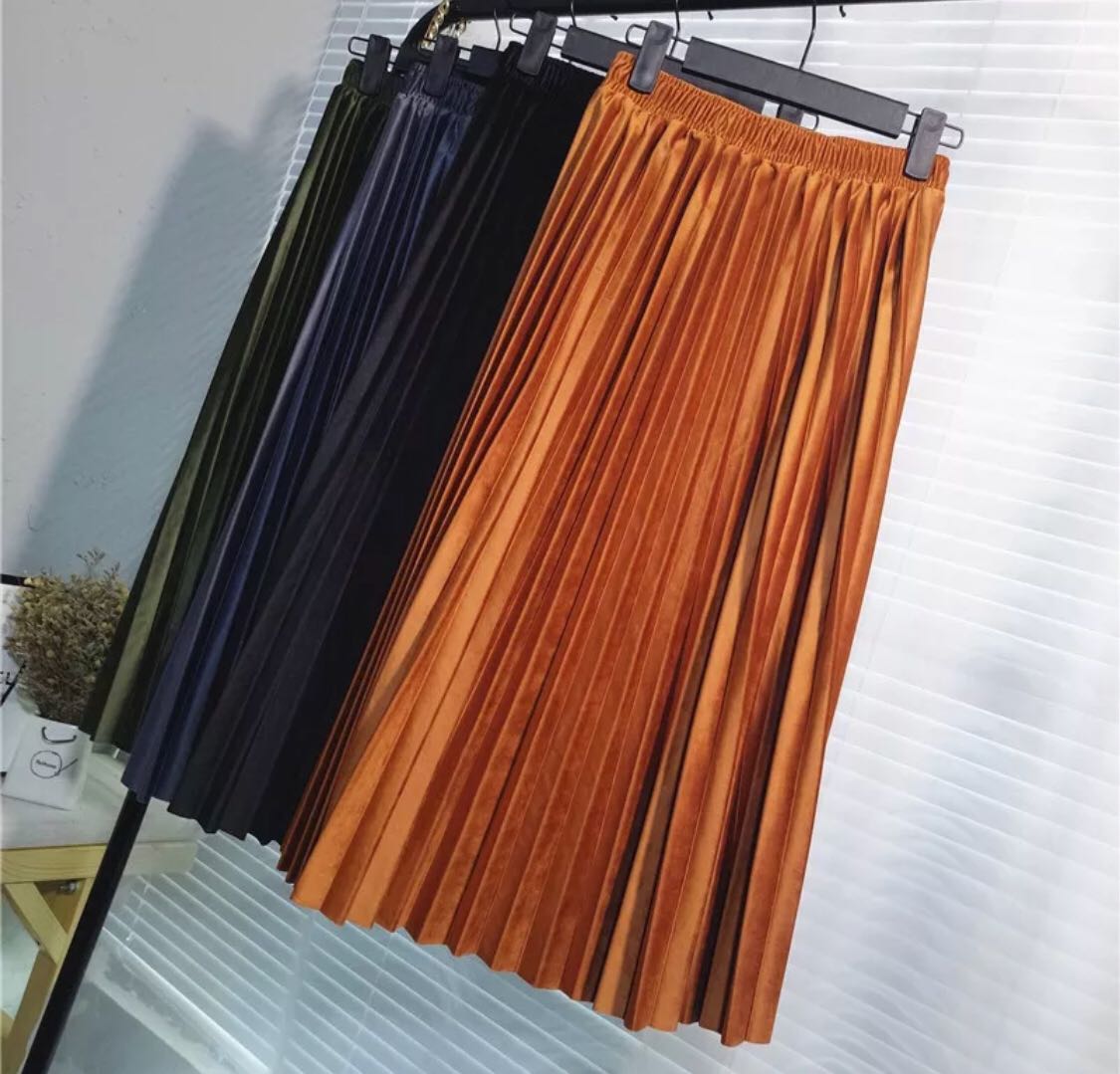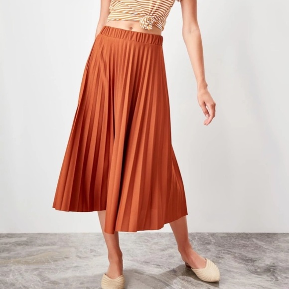 rust pleated skirt