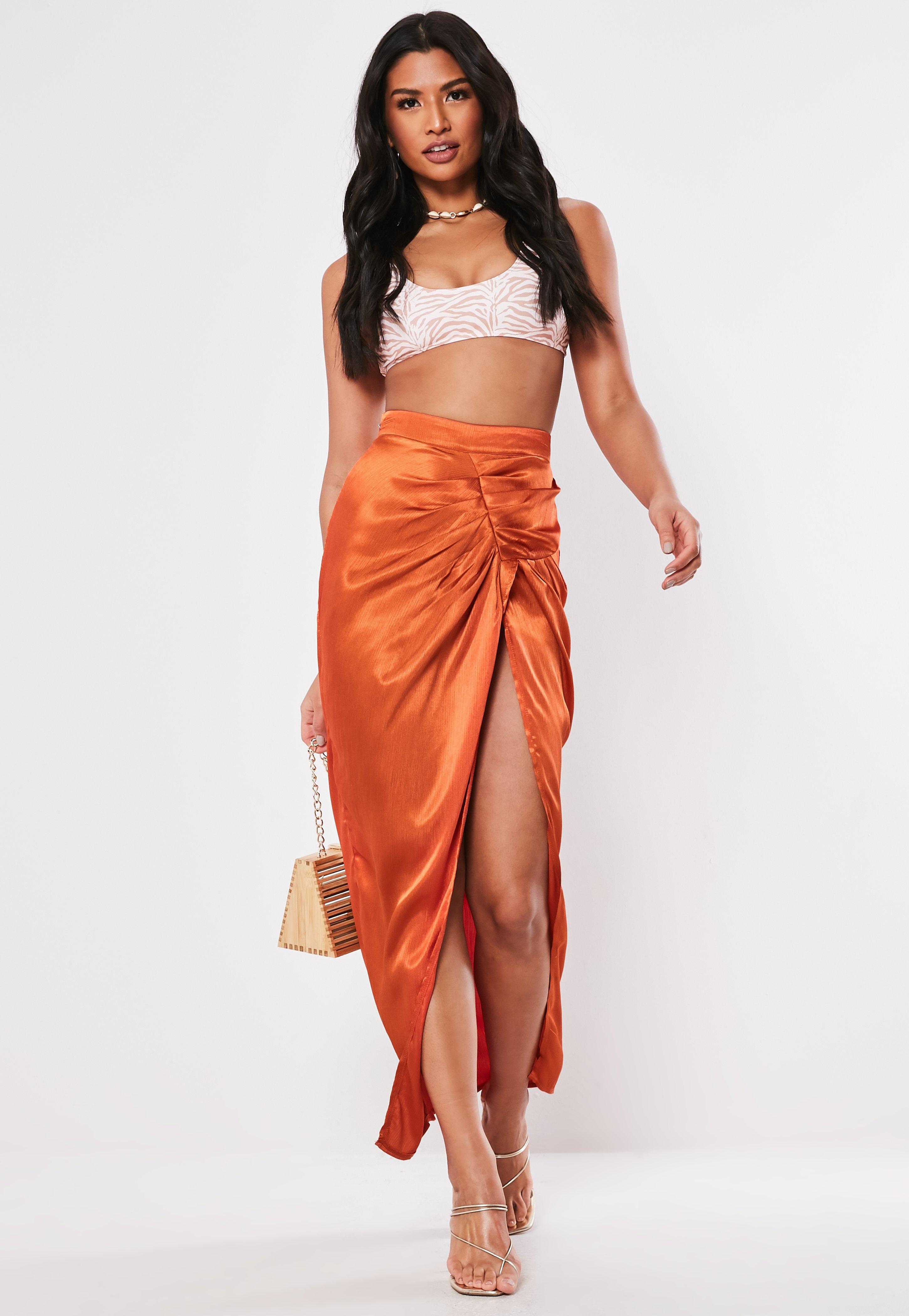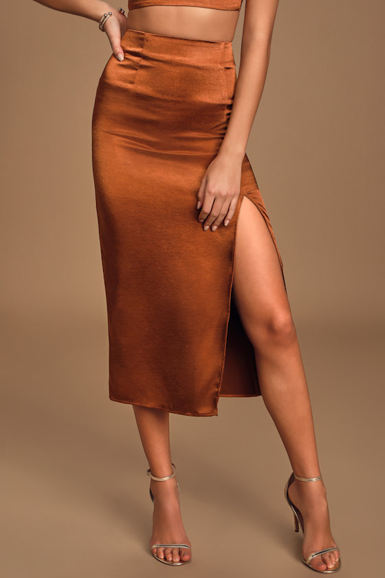 rust satin skirt