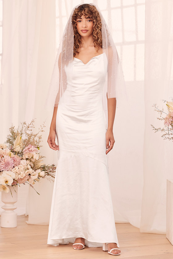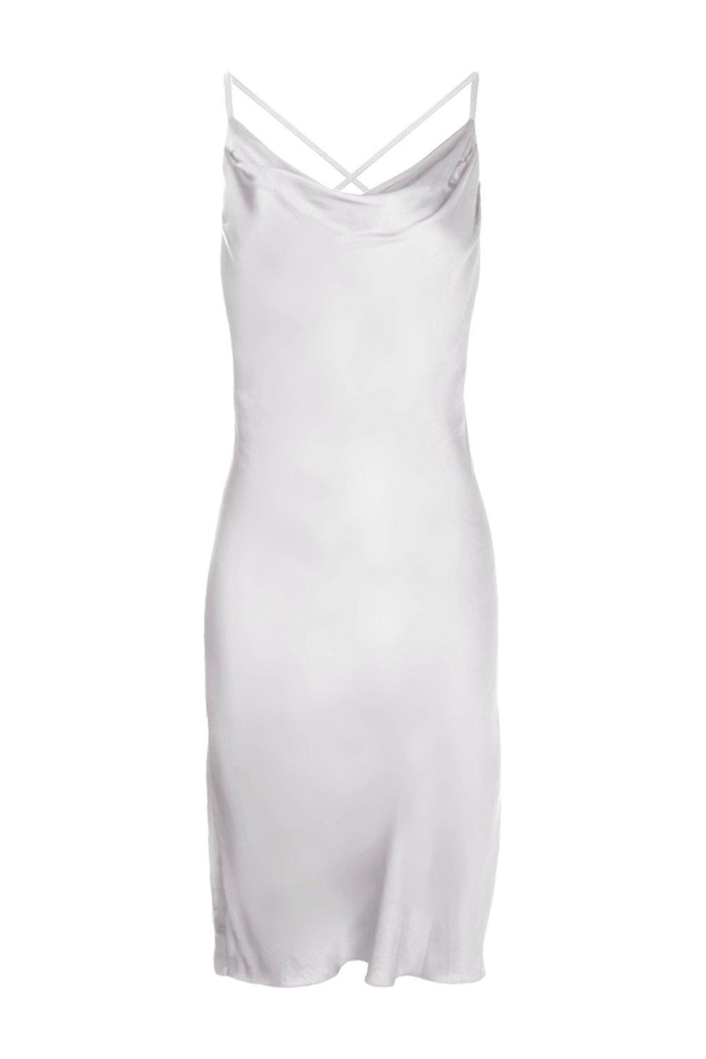 satin cowl neck white dress
