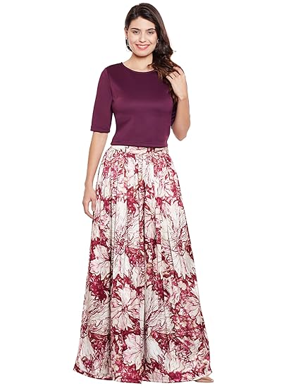 satin long skirt with crop top