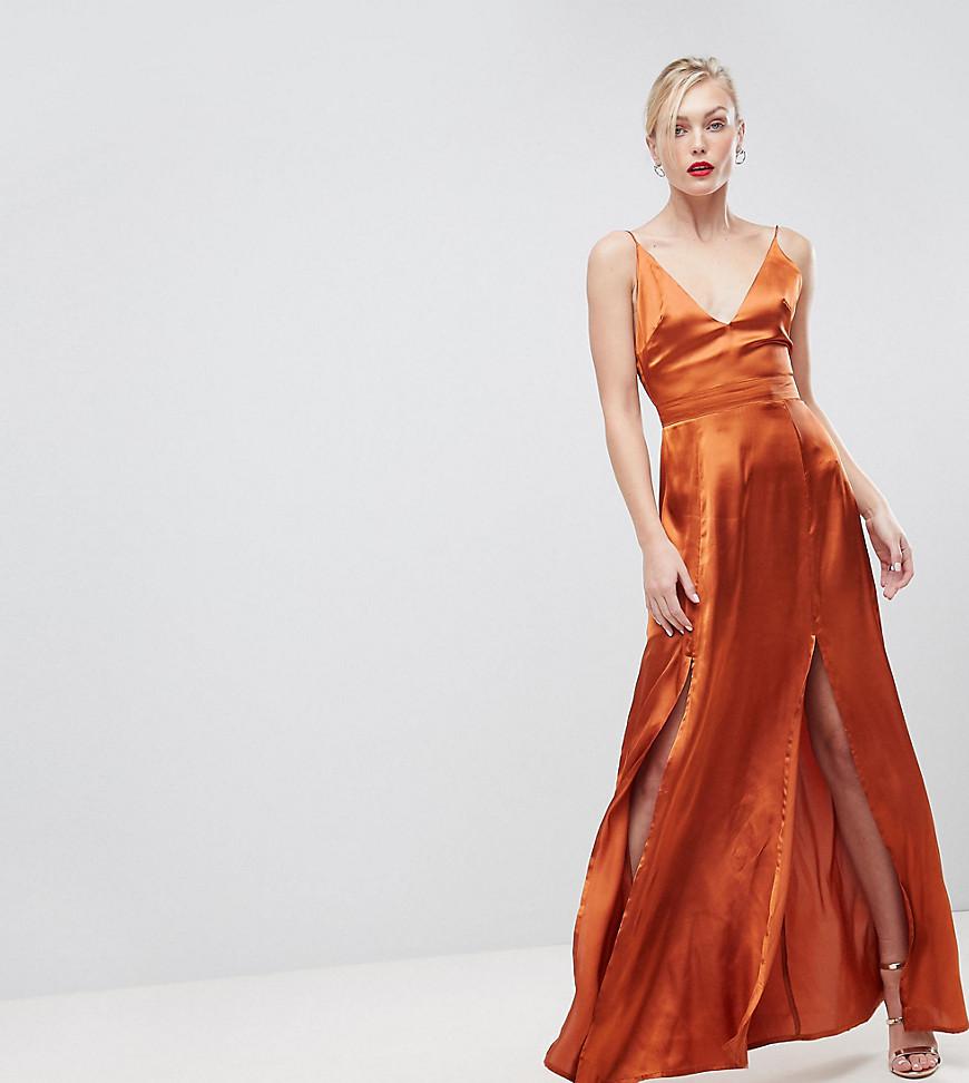 satin maxi split dress