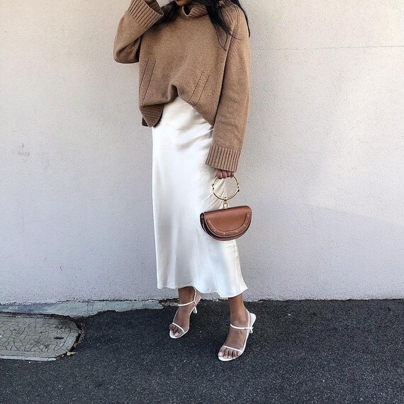 satin skirt white