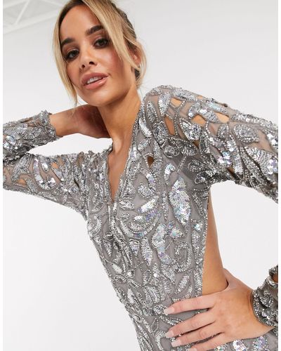 sequin cutwork open back mini dress