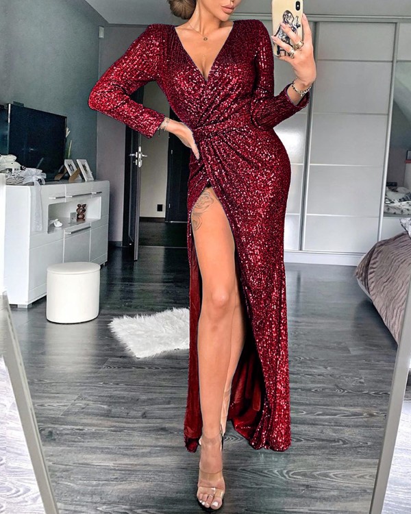 sequin irregular wrap dress