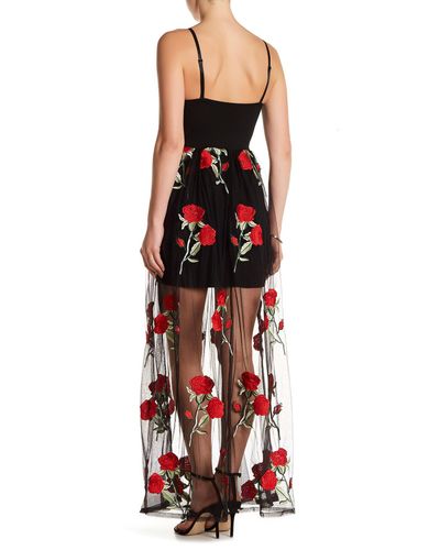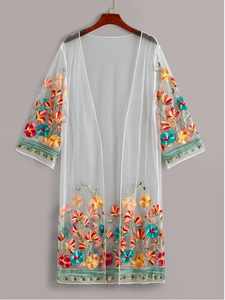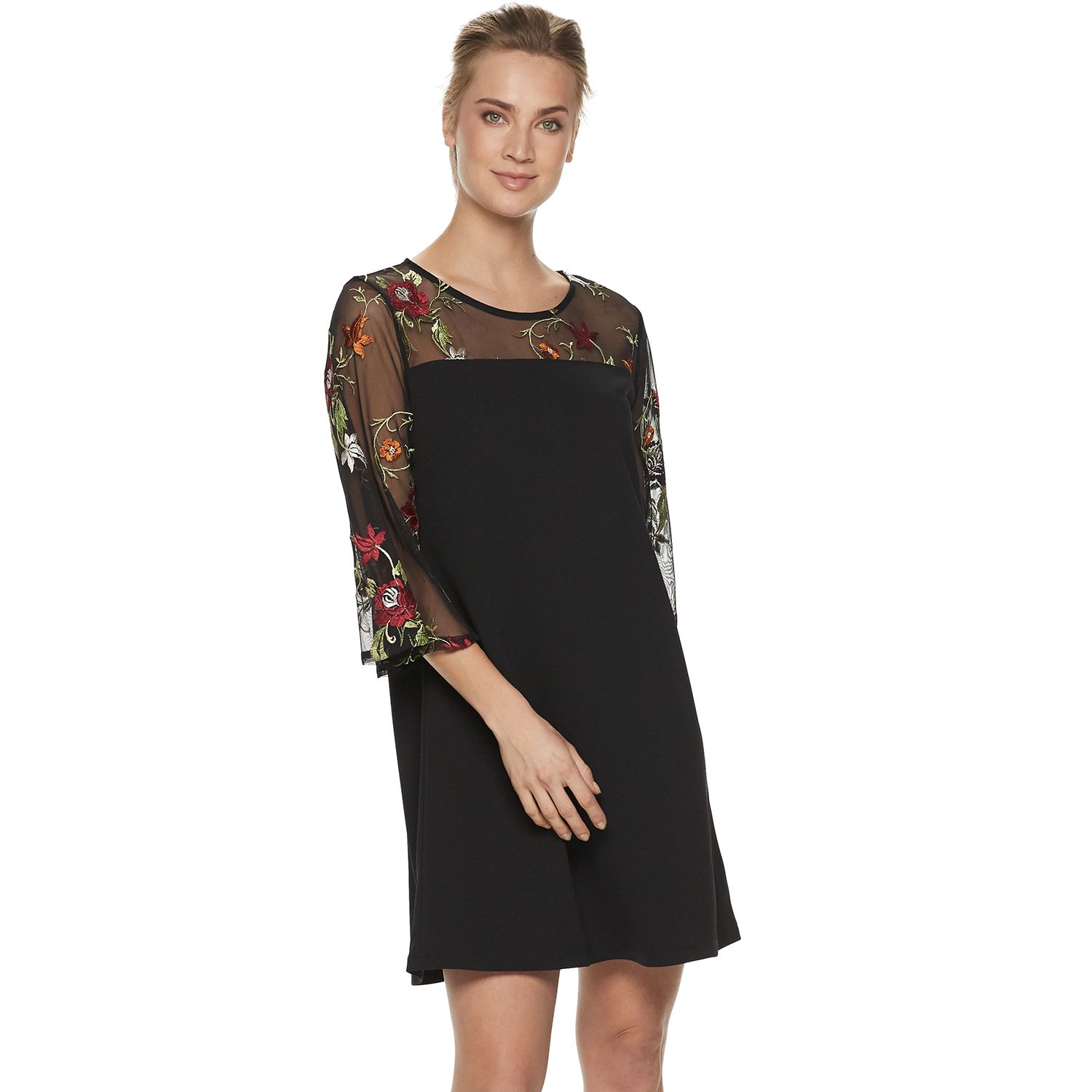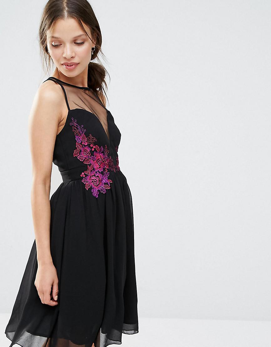 sheer mesh yoke floral embroidered dress