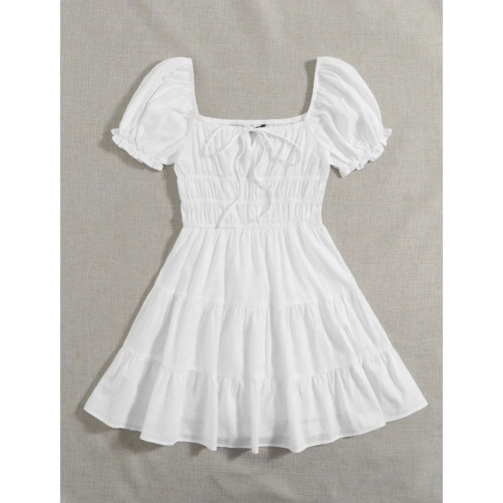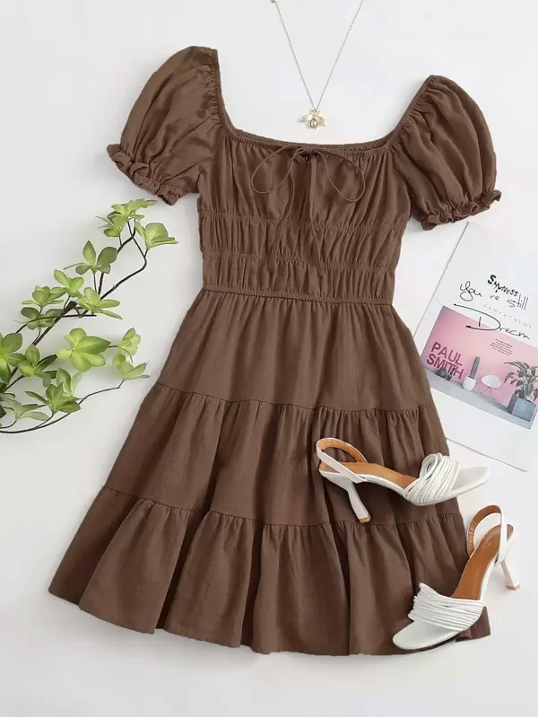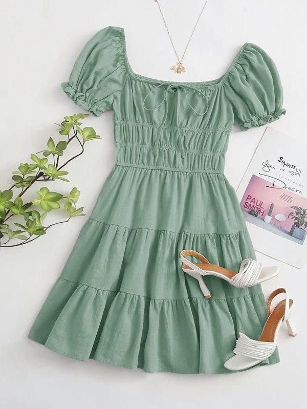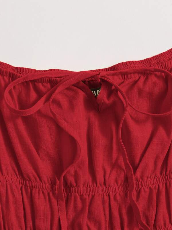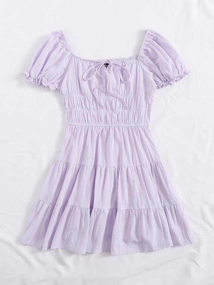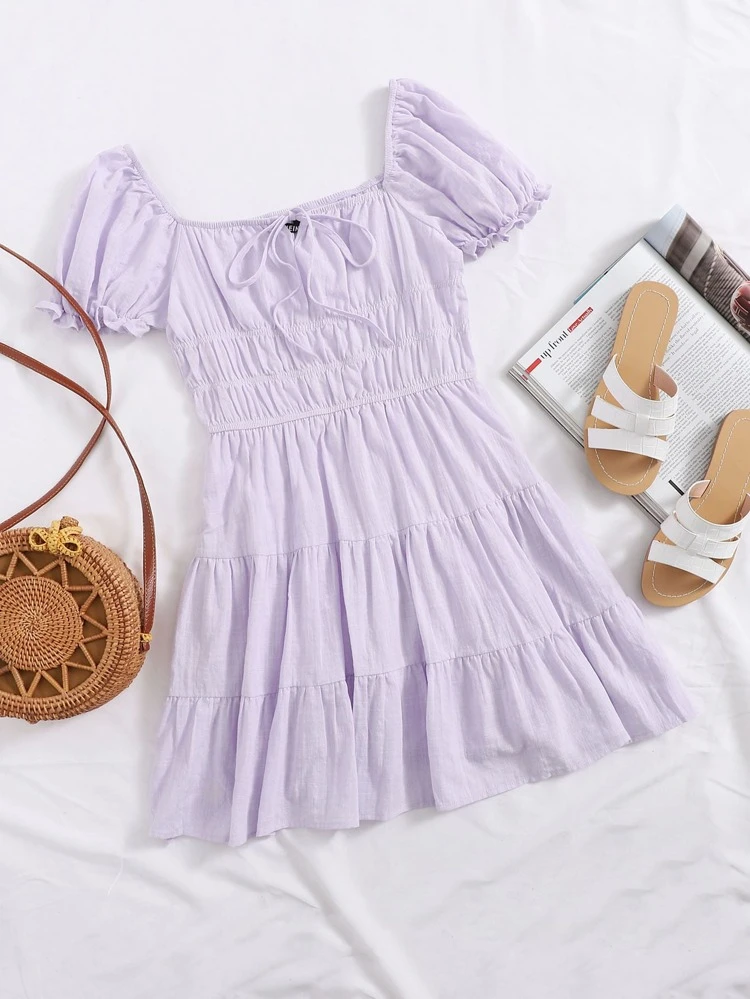 shein tie neck ruched bust tiered dress