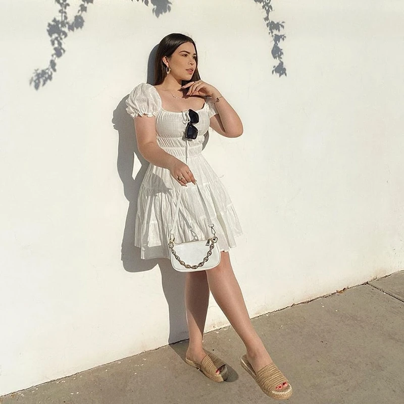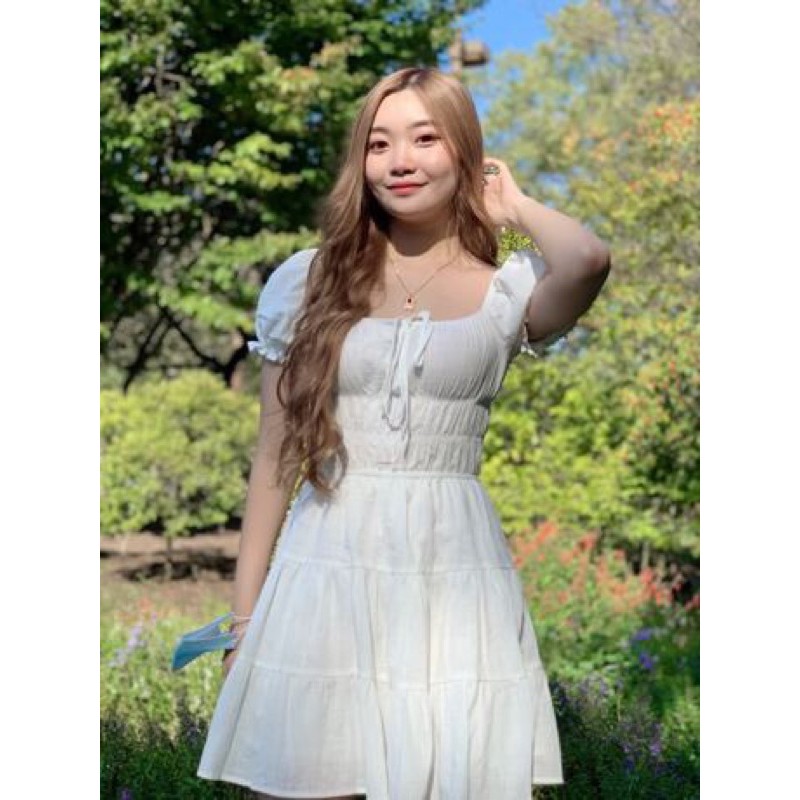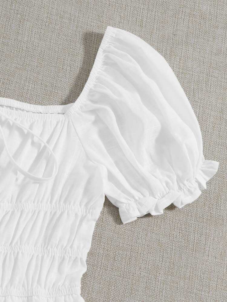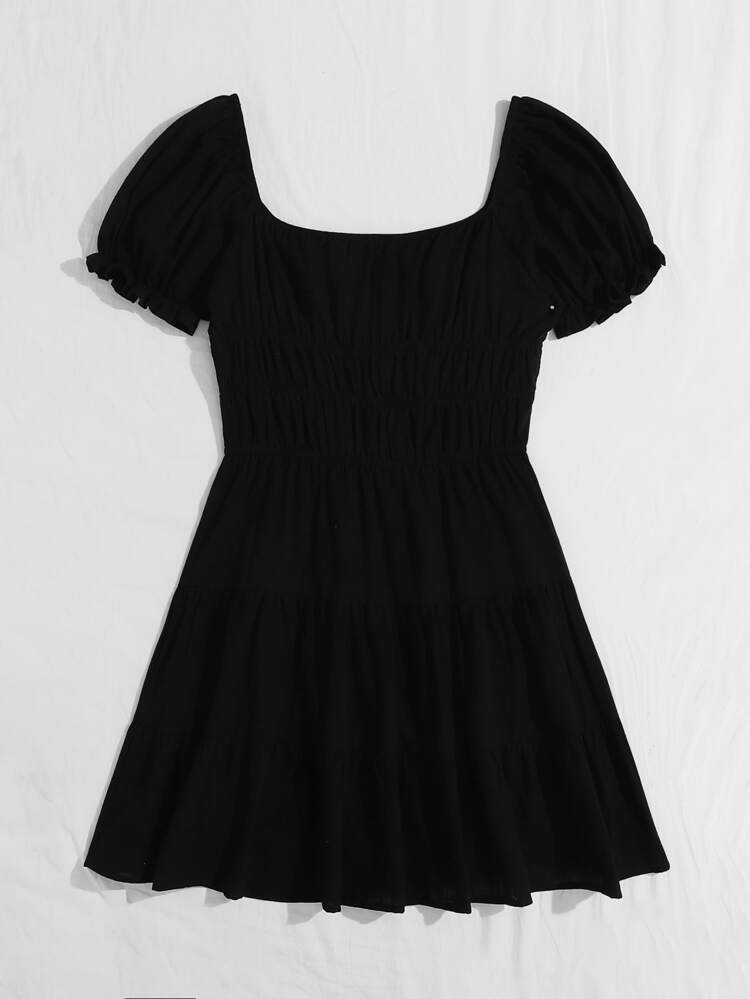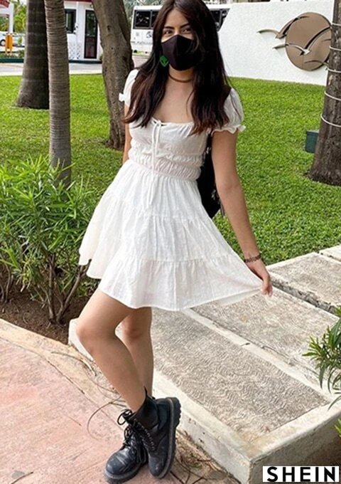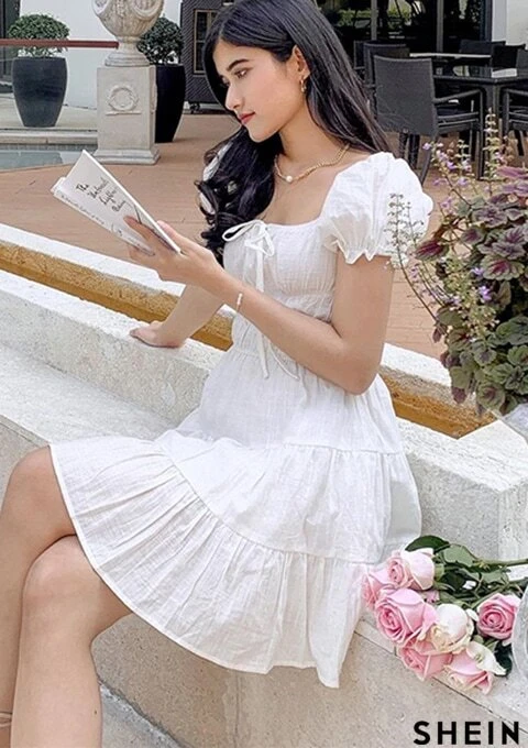 shein tie neck ruched bust tiered dress