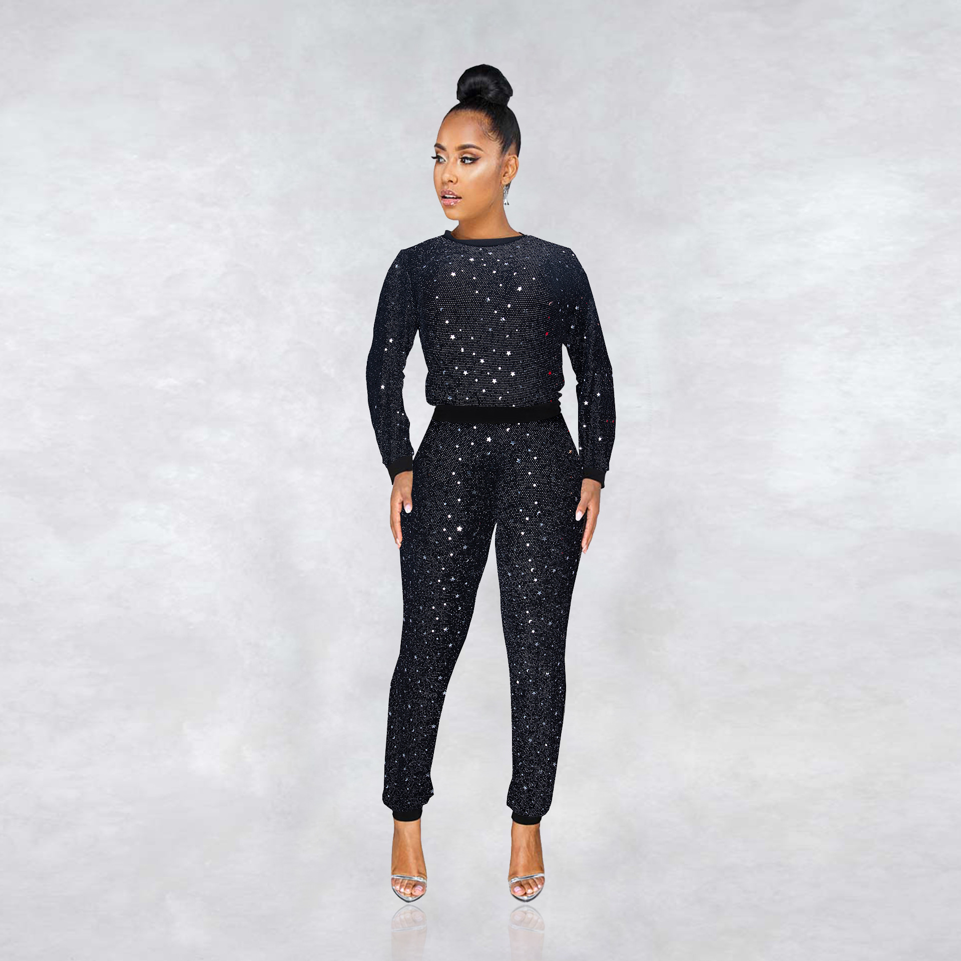 shiny 2 piece outfit