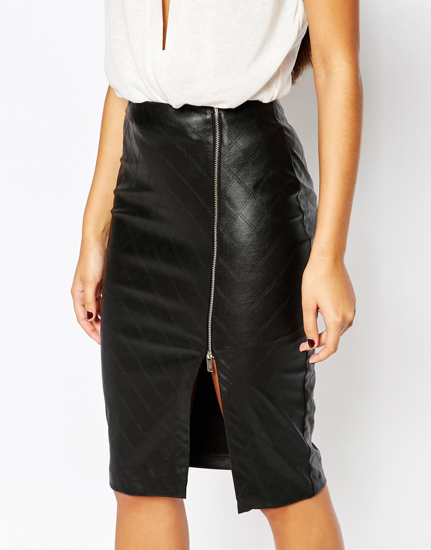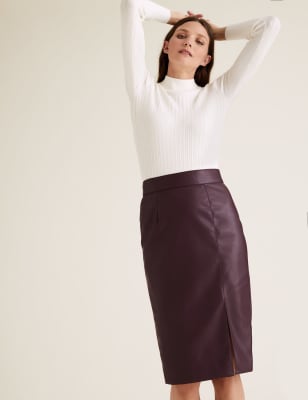 side split leather skirt