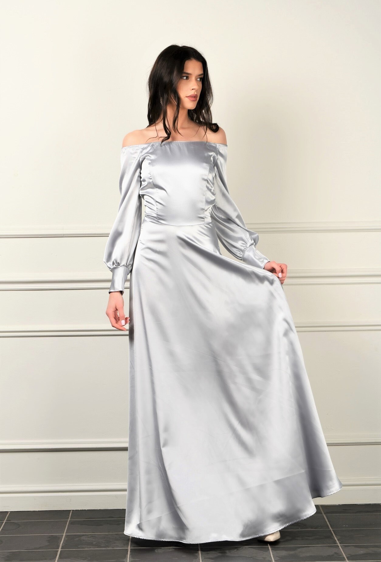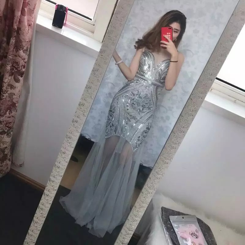 silver maxi evening dress