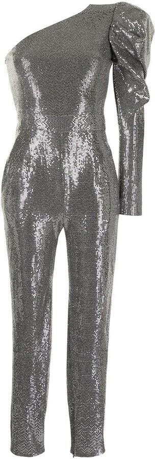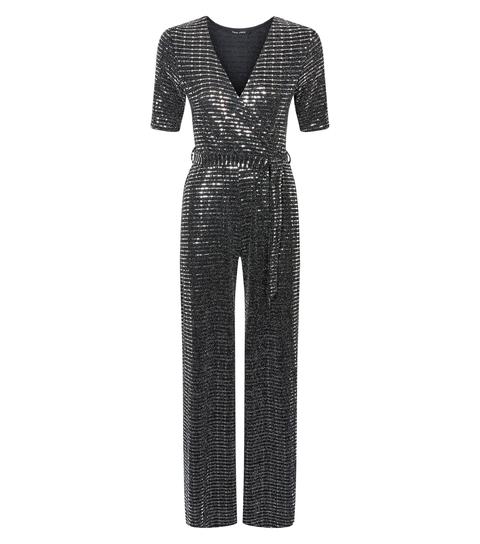 silver mirrored sequin wrap jumpsuit