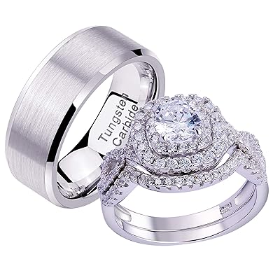 silver wedding band sets for him and her