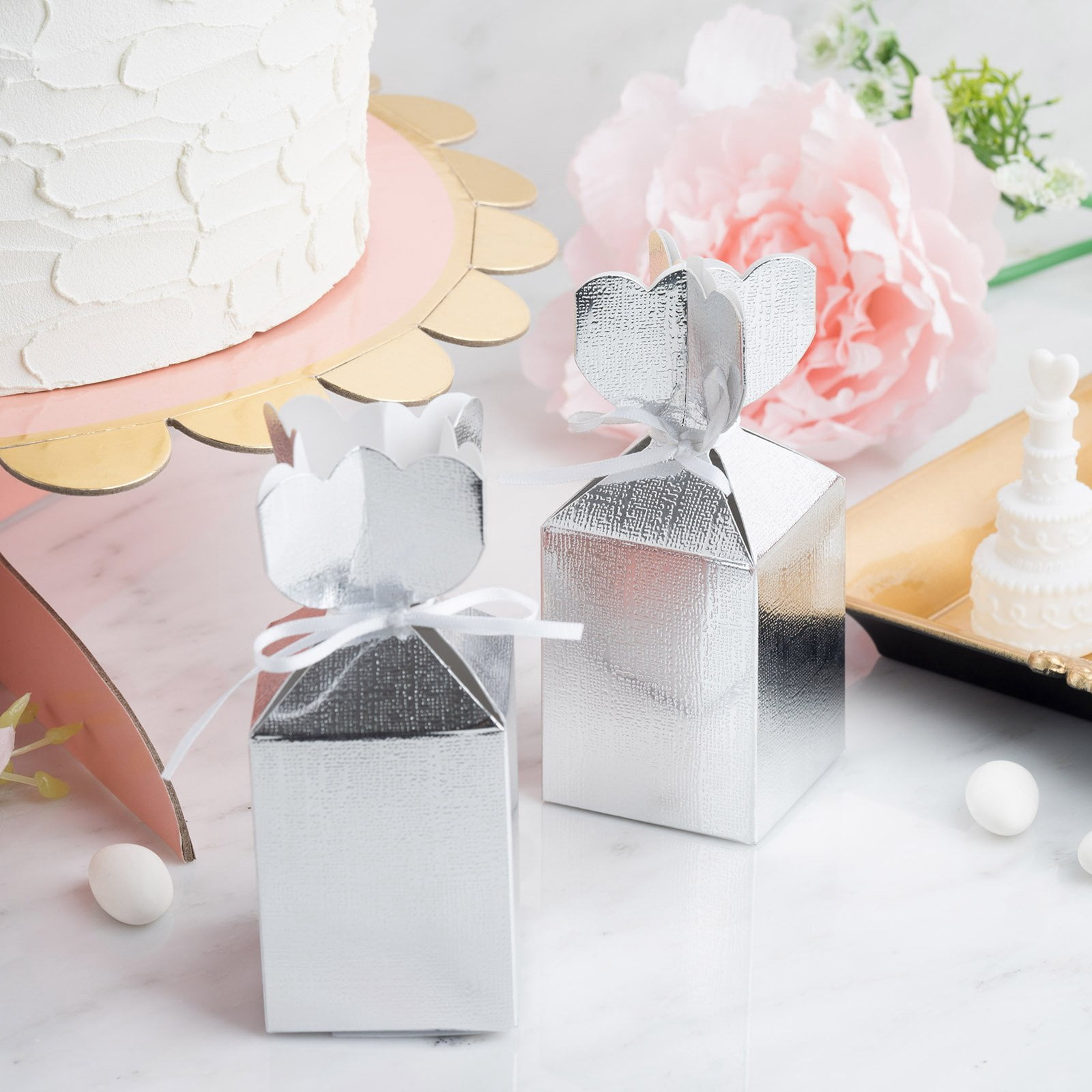 silver wedding favor boxes