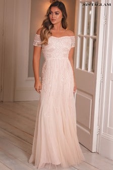 sistaglam daisianne navy embellished long sleeve wrap maxi dress