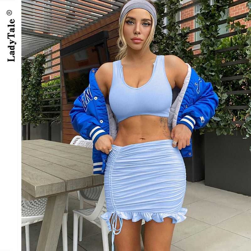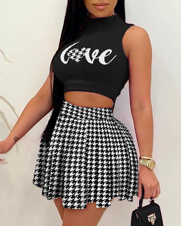sleeveless cropped top & pleated skirt sets