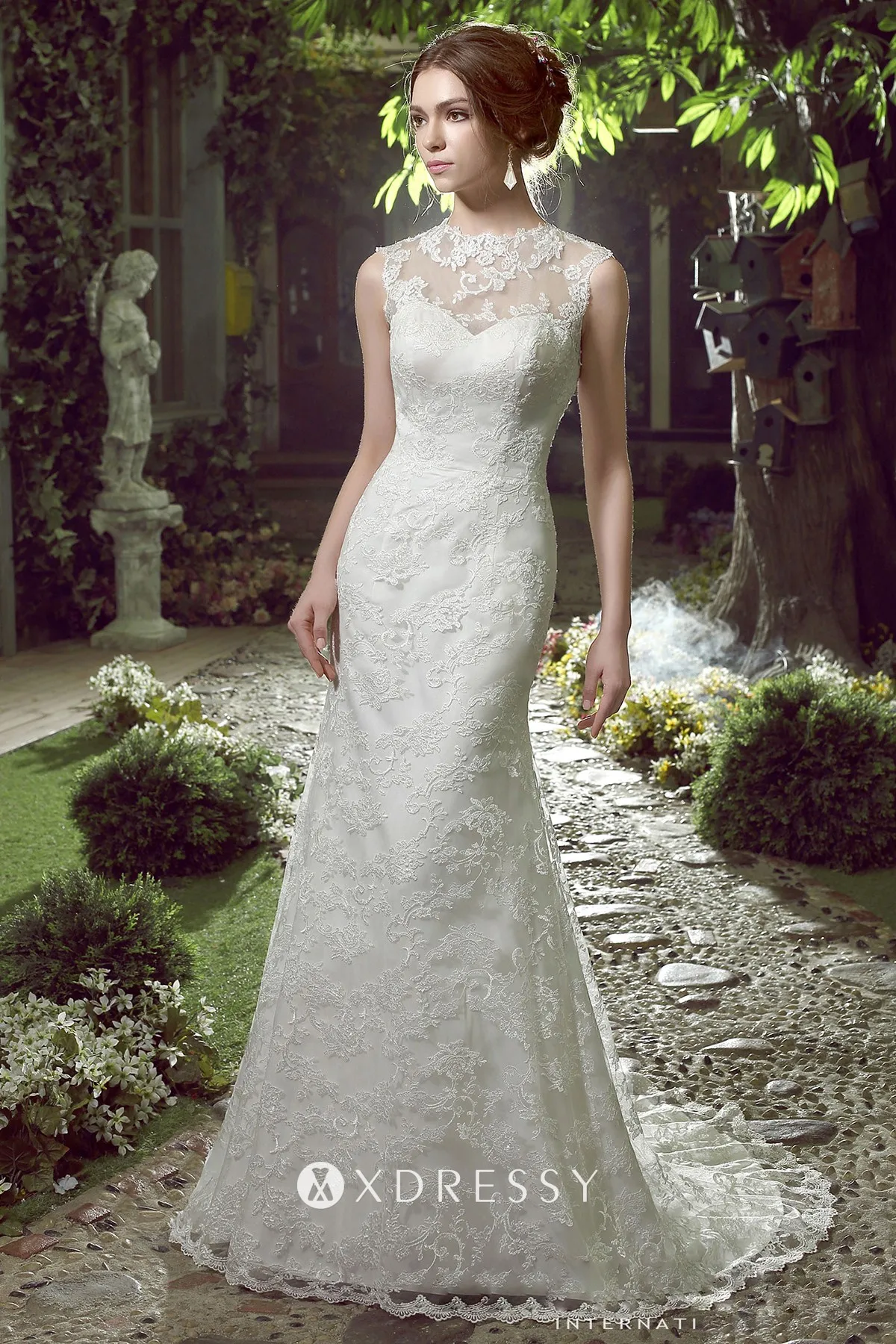 sleeveless white gown
