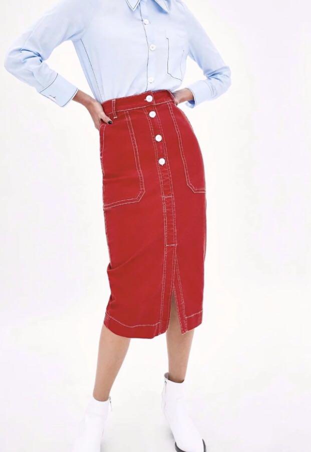 solid red skirt