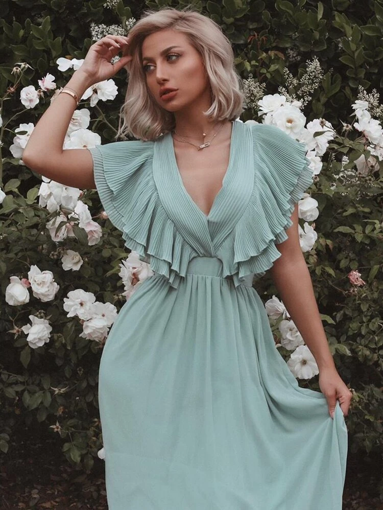 solid ruffle dress