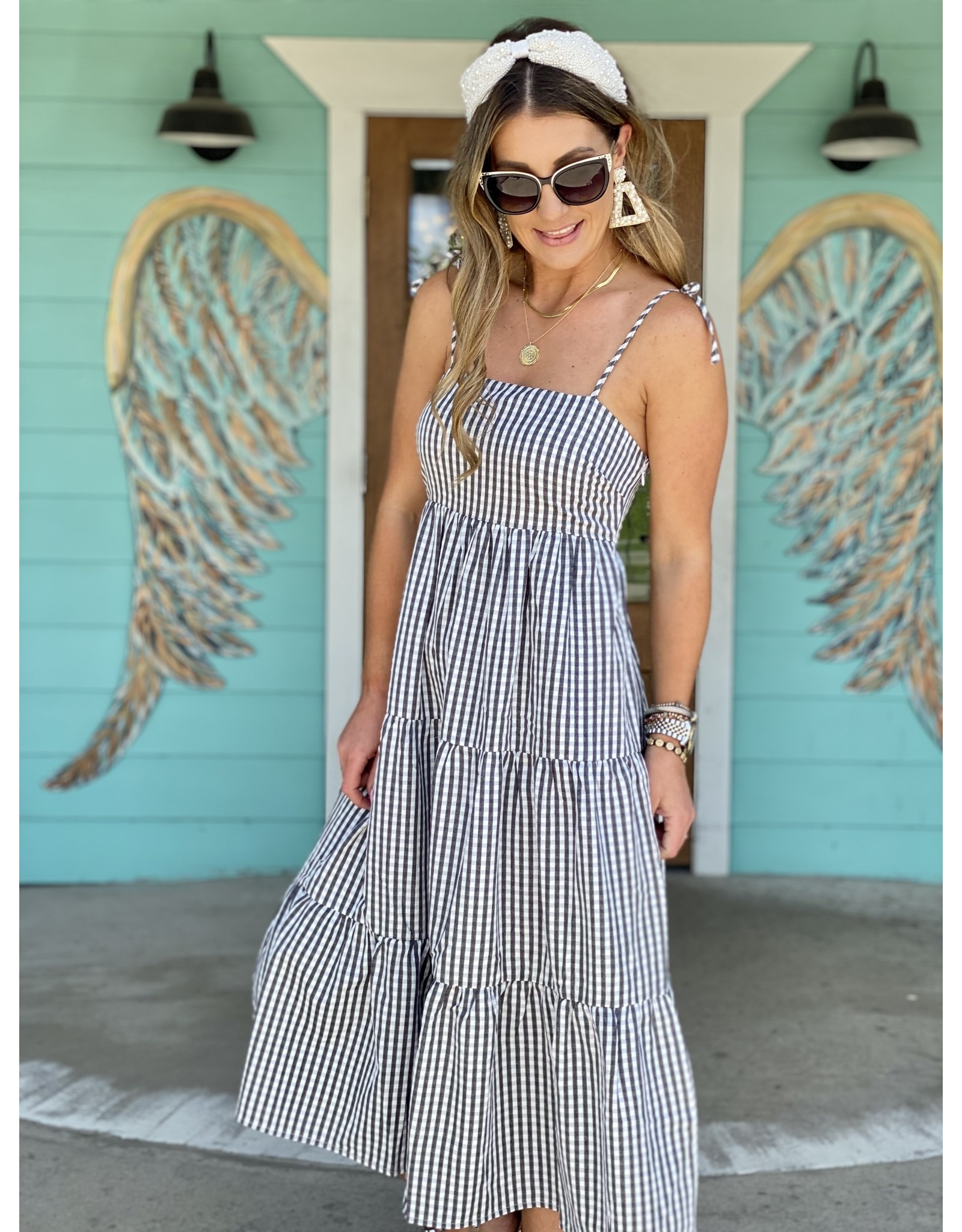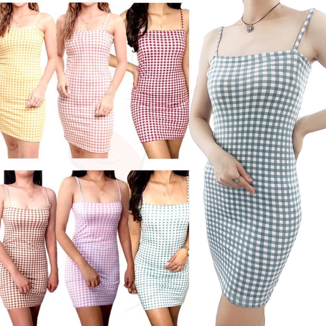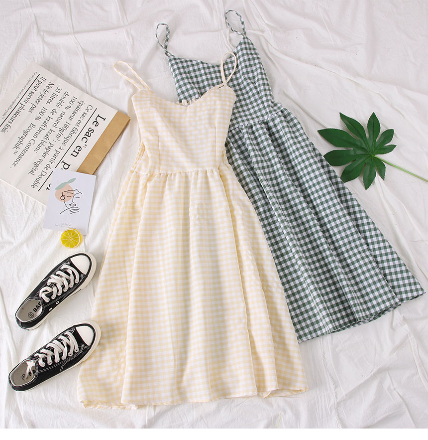 spaghetti strap gingham dress